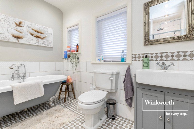 Upstairs the largest of the bedrooms benefits from built in storage, a walk in wardrobe and en-suite shower room, bedroom two has a en-suite with hand basin and wc and a built in wardrobe, and there are two further good size bedrooms one of which leads to a loft room with velux windows which is currently arranged as a games room - this excellent additional space has access into a large loft offering great potential to extend the second floor if desired stpp. The family bathroom has a free standing roll top bath, separate stand in shower, wc and hand basin.