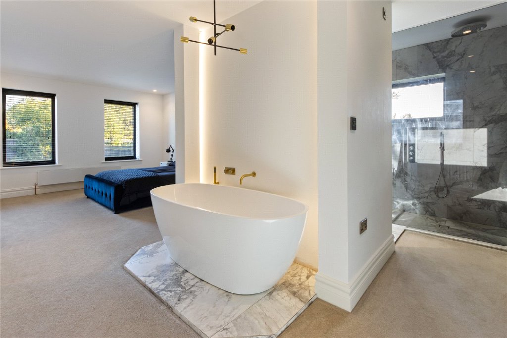 - Luxurious principal bedroom with freestanding bath, dressing room, and en suite