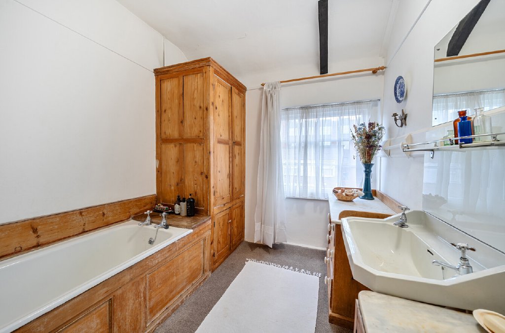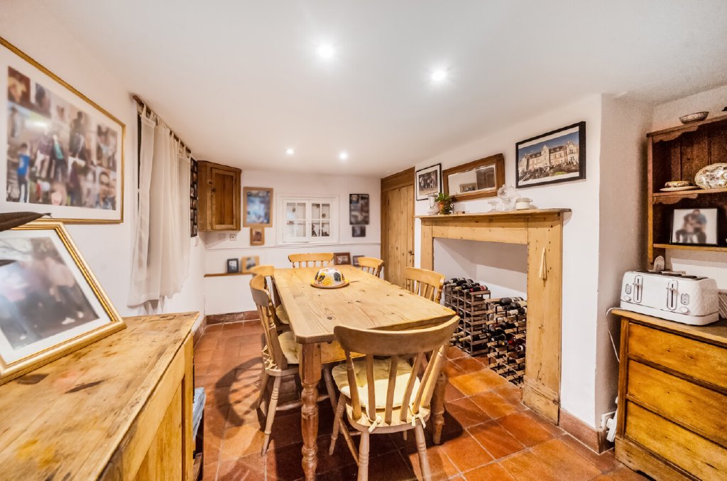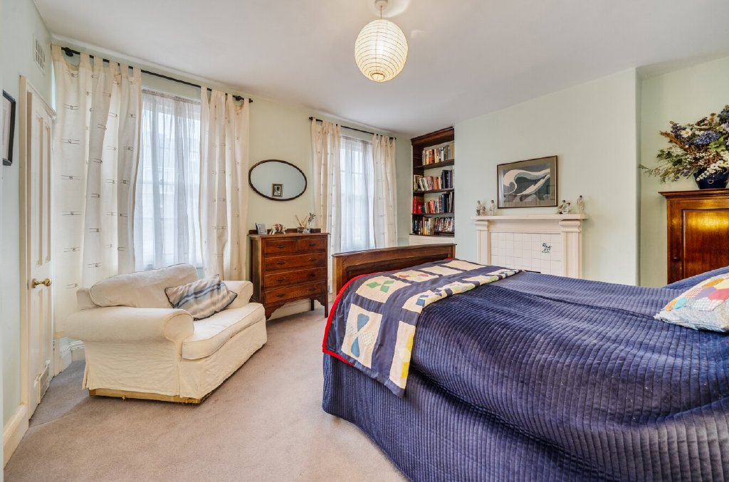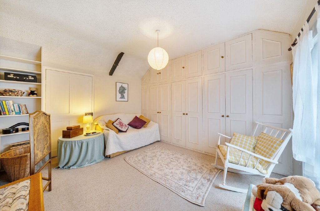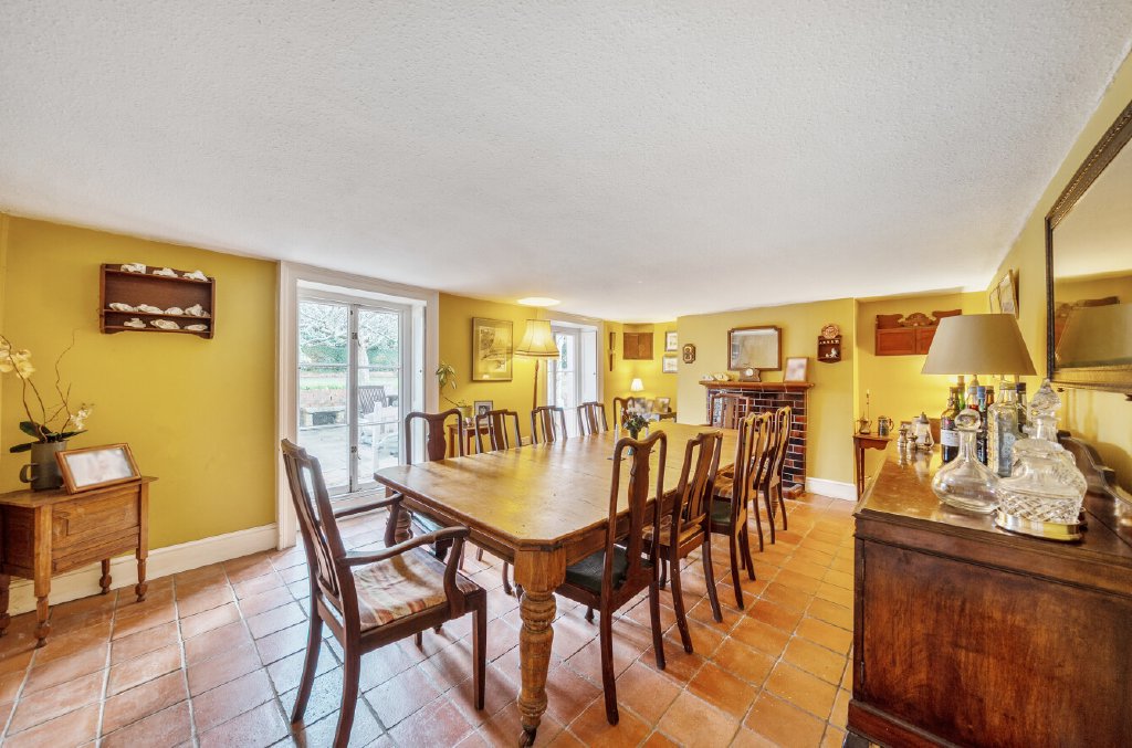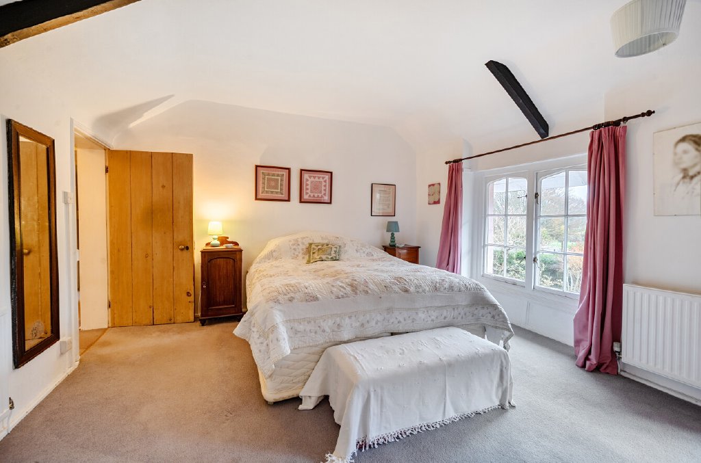 Designed with entertaining in mind, the drawing room and sitting room are linked by elegant double doors, allowing the spaces to be used separately or opened up to create a wonderful open-plan setting for gatherings. Large windows frame views over the gardens, filling both rooms with natural light, while two open fireplaces offer a warm and atmospheric focal point. A double bedroom with an en-suite shower room offers flexible space, ideal for visiting guests, older children or multigenerational living.