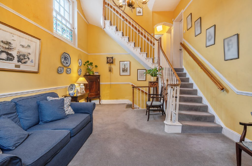 The living space is arranged over three floors, providing a wealth of accommodation that lends itself perfectly to both family life and multigenerational living. The impressive entrance hall, large enough to accommodate even the grandest Christmas tree, leads down to a generous kitchen/breakfast room with a central island and doors opening directly onto the gardens.