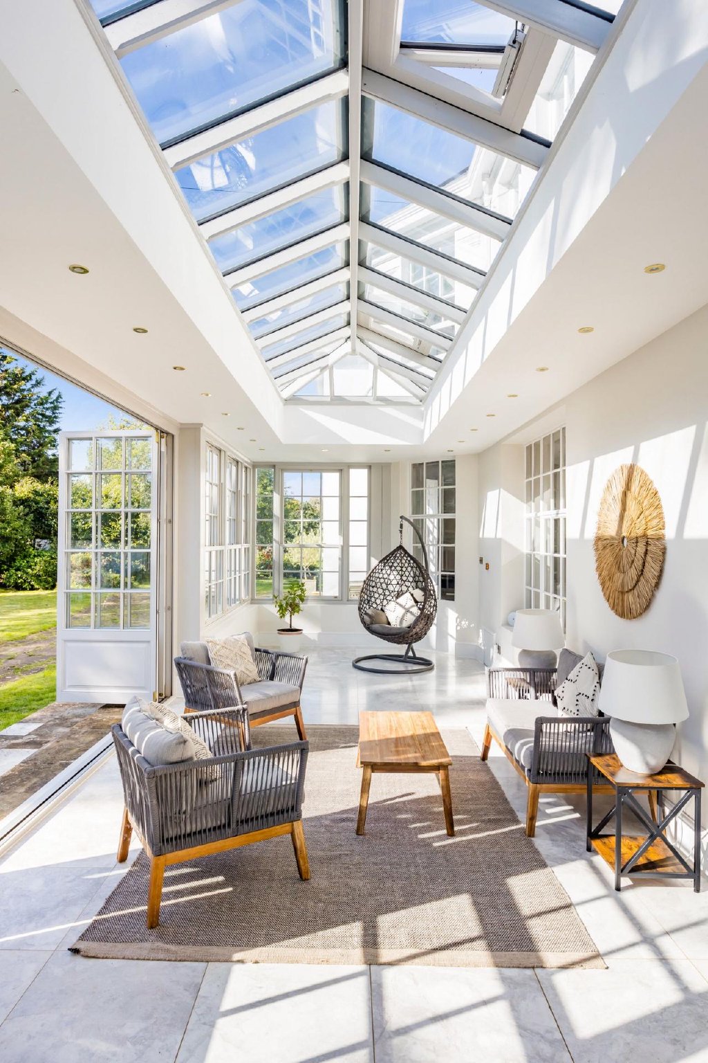 The current owners have reimagined the property with great care. It now balances historic charm with modern convenience. The renovation respects the original character of the home while introducing contemporary features that create a refined and relaxed lifestyle. Arranged over three levels, including a cellar, the house offers six bedrooms on the first floor, a library, a drawing room, an extensive open plan kitchen, dining and living space, an orangery, generous cellar storage suited to wine and other items, and a separate garage.