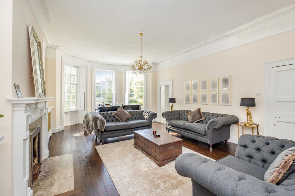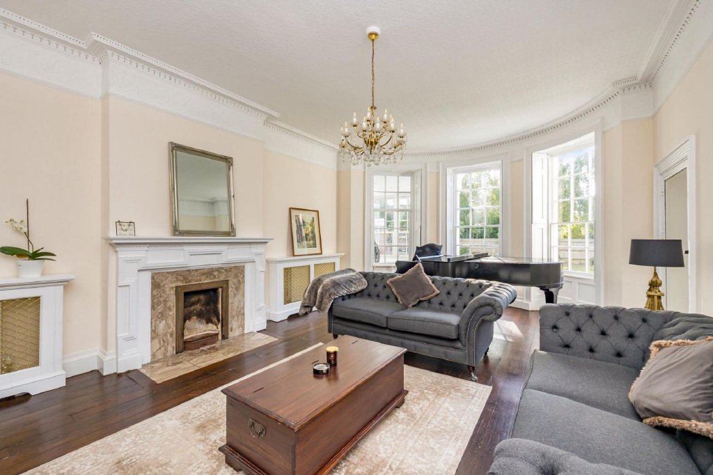 The ground floor also includes a cloakroom for guests and a grand drawing room with a bow window which provides a peaceful space for further entertaining.