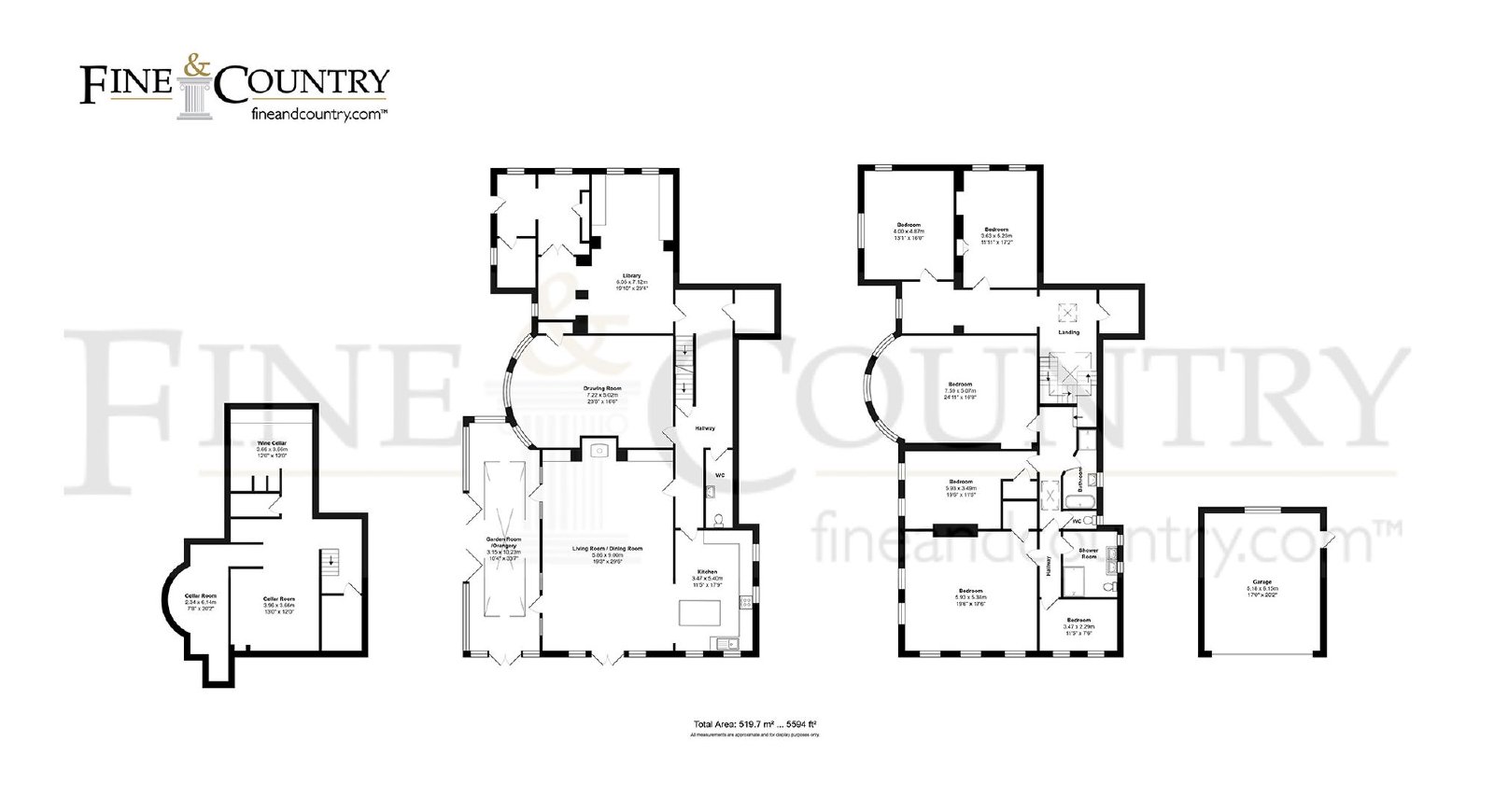 On the lower ground level, a useful cellar is arranged into three main sections offering excellent storage and an ideal environment for preserving a good wine collection.