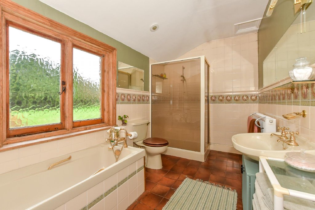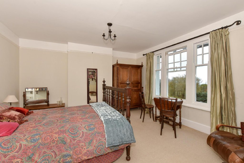 We also found a different lifestyle. We have views of the grounds and the wildlife from every window on the property. As the house sits on elevated south- facing land we not only see beautiful sunsets and sunrises but big skies over the sea, and on good winter days sunlight streams into the house for an amazing ‘greenhouse effect’ which together with our open fires and wood burning stoves fuelled by wood from our own trees, helps to keep it cosy. World War 1 and 2 planes have flown directly above us at the time of the Folkstone air show and in association with the Battle of Britain Museum. Previous owners who have made return visits have commented that it was a happy house; we could not agree more.