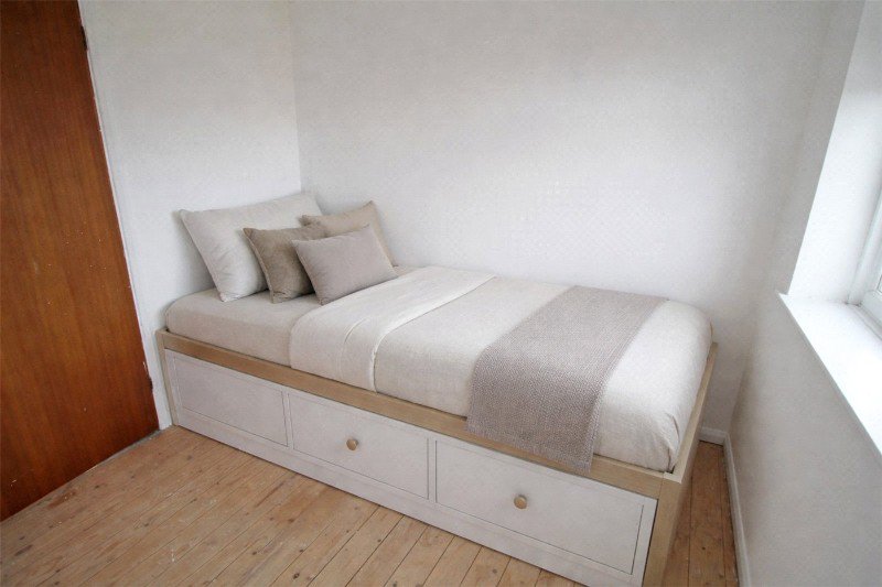 11’1 x 8’9 (min) a good double bedroom with UPVC window to the rear aspect, fitted furniture including dual single wardrobes, bedside cabinets and overhead storage, power points and stripped wood floor.