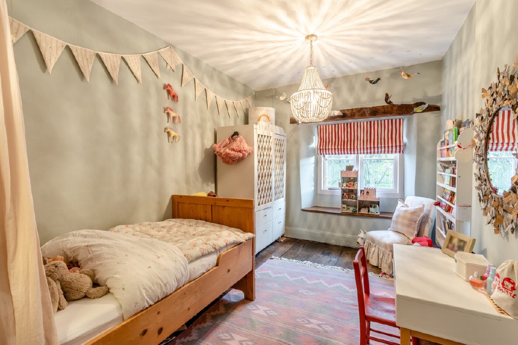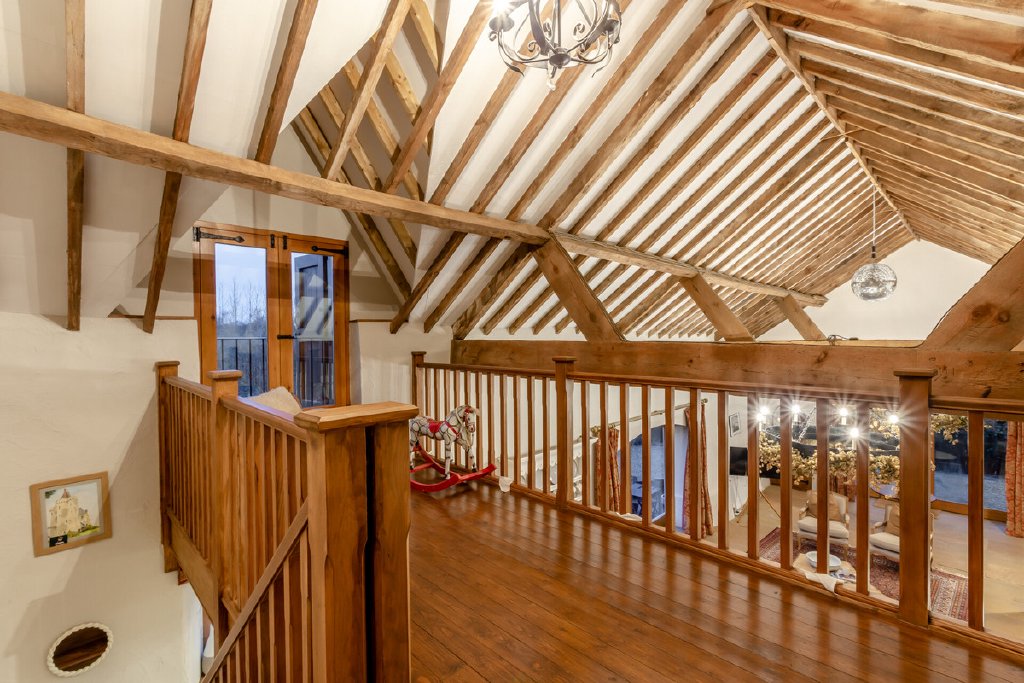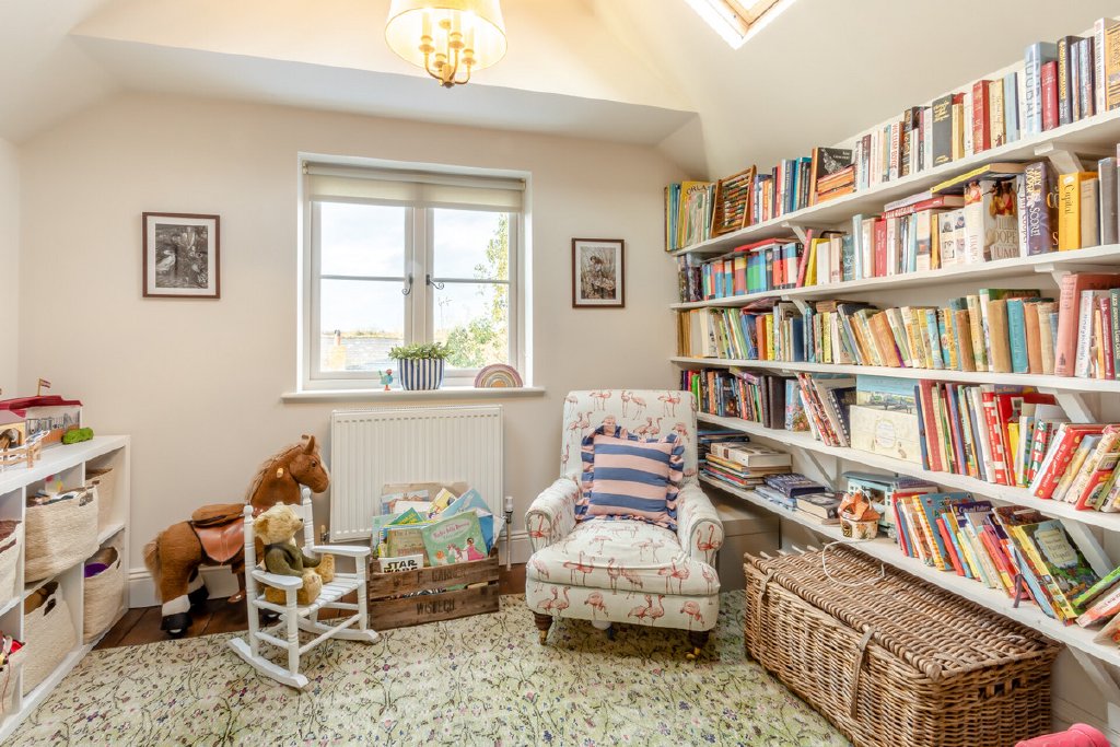 On the upper floor there are five double bedrooms plus a lovely study/bed six. The first double in the older part of the house has a range of fitted wardrobes and a luxurious en- suite bathroom with freestanding tub and a shower. The second double has an en-suite bathroom. Next are two double bedrooms one with a really funky cabin bed and storage plus a luxurious family shower room. There is also a charming bedroom currently used as a playroom but would be ideal as study/library or bedroom. The last double is currently a bright and spacious main bedroom with fitted wardrobes and an en-suite shower room.
