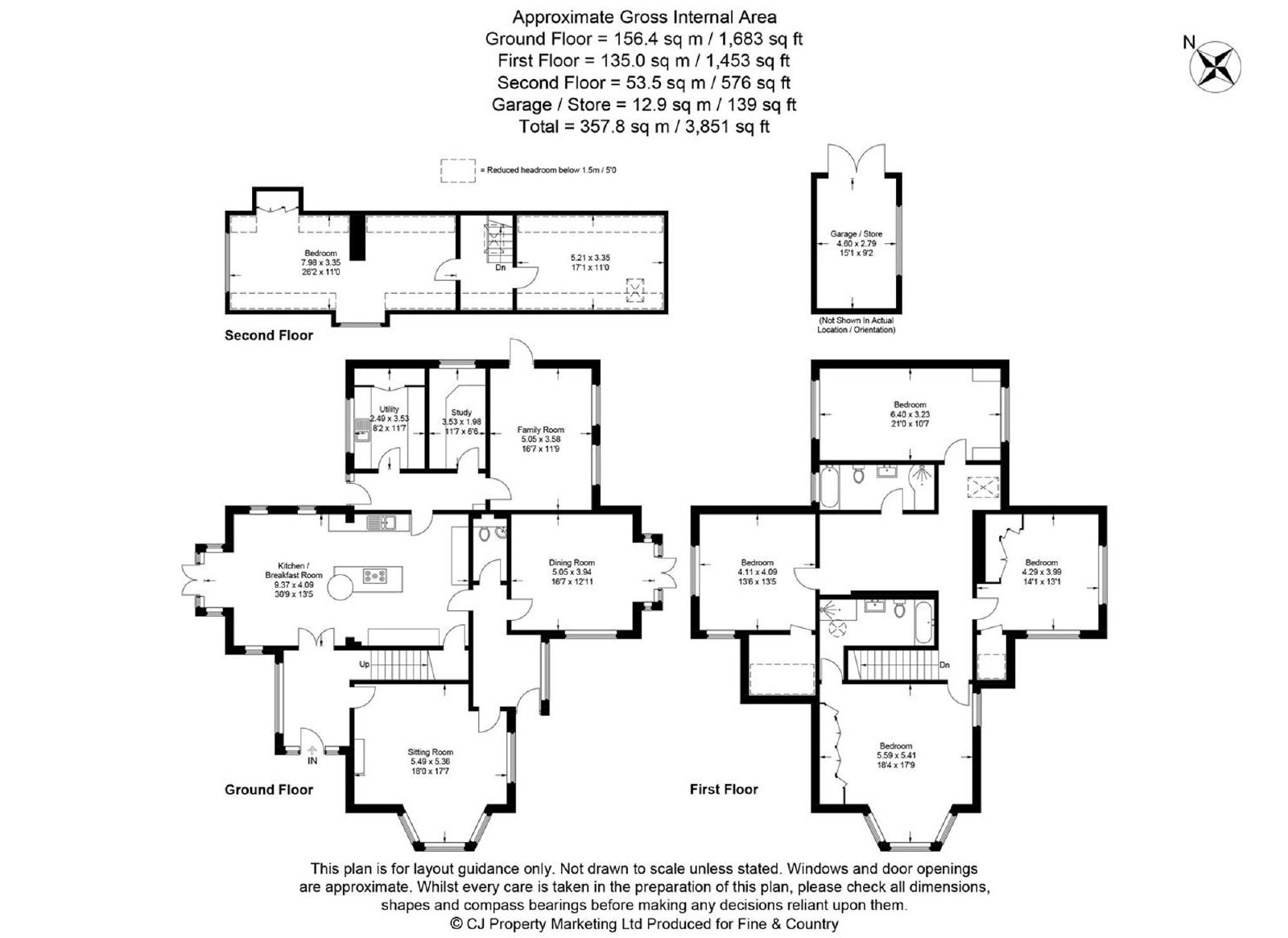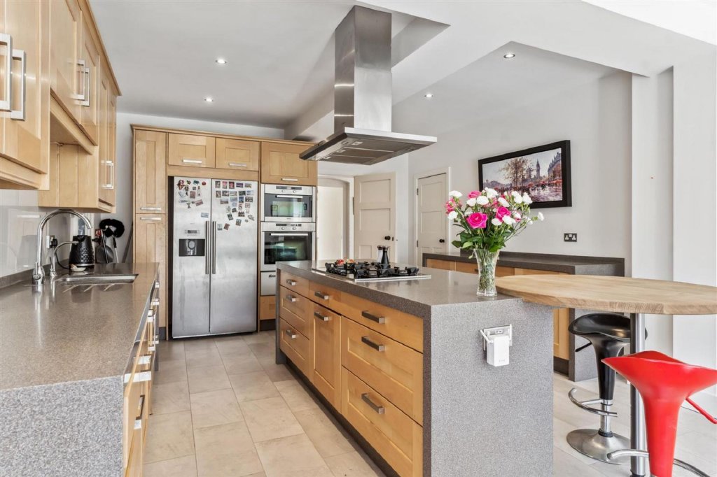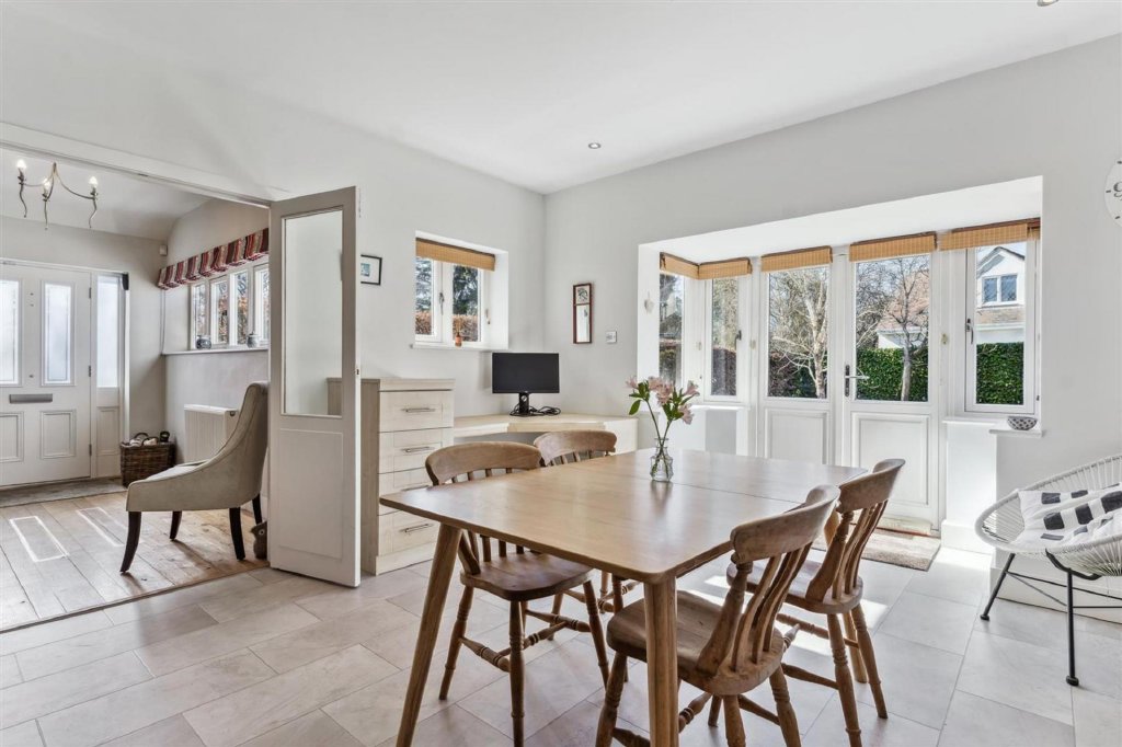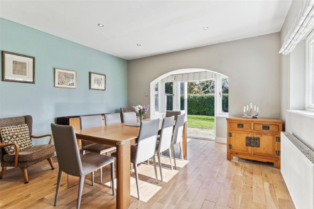 An impressive and substantial family home available for the first time in almost 30 years, offering superb and flexible accommodation. The large entrance hall provides direct access into the substantial sitting room with an attractive bay window and views of the garden. The kitchen/ breakfast room is spacious and well designed with a central island and space for a large breakfast table, providing an excellent entertaining space with double doors out to the garden and terrace. There are three further reception rooms currently used as a dining room, family room and study. Completing the ground floor accommodation, there is a cloakroom and utility room. On the first floor the principal bedroom has a large bay window which floods this spacious room with light and has an excellent en-suite with bath and shower. There are three further large double bedrooms and a family bathroom. Stairs rise up to the second floor where there is two further rooms, one is currently used as a bedroom and the other, as a storage space. Outside, the garden wraps around the property with is a large area of lawn and mature hedges to the boundaries and a detached garage/ store. The property is approached via a long gravel driveway which provides ample parking.