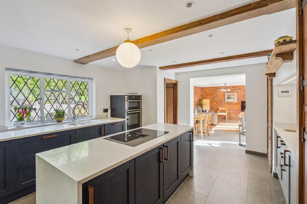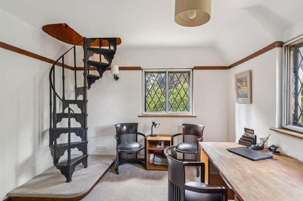 A wonderful example of a fine Arts & Crafts home with many of it's original features still in place yet with a contemporary twist which perfectly balances modern day living with traditional character. Shothanger House is situated on an elevated position as many of the grand homes of yesteryear were, with a long sweeping driveway accessed via electric gates, leading up to the house and a generous parking area. One enters the house via the curved turret into an enclosed porch which leads through to the impressive entrance hall. This welcoming space oozes charm and provides a taste of the character and craftsmanship which is evident throughout this beautiful home. The sitting room is superb, triple aspect and flooded with natural light with the original feature fireplace. The dining room is equally impressive and generously proportioned with views into the walled garden. The kitchen has been updated recently whilst still retaining the original pine cupboards and walk-in pantry and leads through to the new extension, currently used as a family room. Modern glazed doors that compliment the Crittall windows of the main house, lead out into the walled courtyard garden, a delightfully private and sheltered sun trap to enjoy entertaining friends. Completing the ground floor accommodation, there is a laundry room and cloakroom. On the first floor, the dual aspect principal bedroom is well proportioned and flooded with natural light, there is also a recently re-fitted ensuite with separate bath and shower. There are three further double bedrooms, a bathroom, shower room and a study. A spiral staircase leads up from the study to the second floor where there is a large games room, bar and store room. Outside, the generous plot measures approx 1 acre, with the house centrally positioned within it. There is a detached brick built garage/car port with a studio and covered store. A further outbuilding provides another study/office, WC and also a utility room. The gardens are mainly to lawn with an array of mature trees throughout the plot and mature hedging to the boundaries. In short, an exceptional period home offering superb accommodation in a mature and private setting.