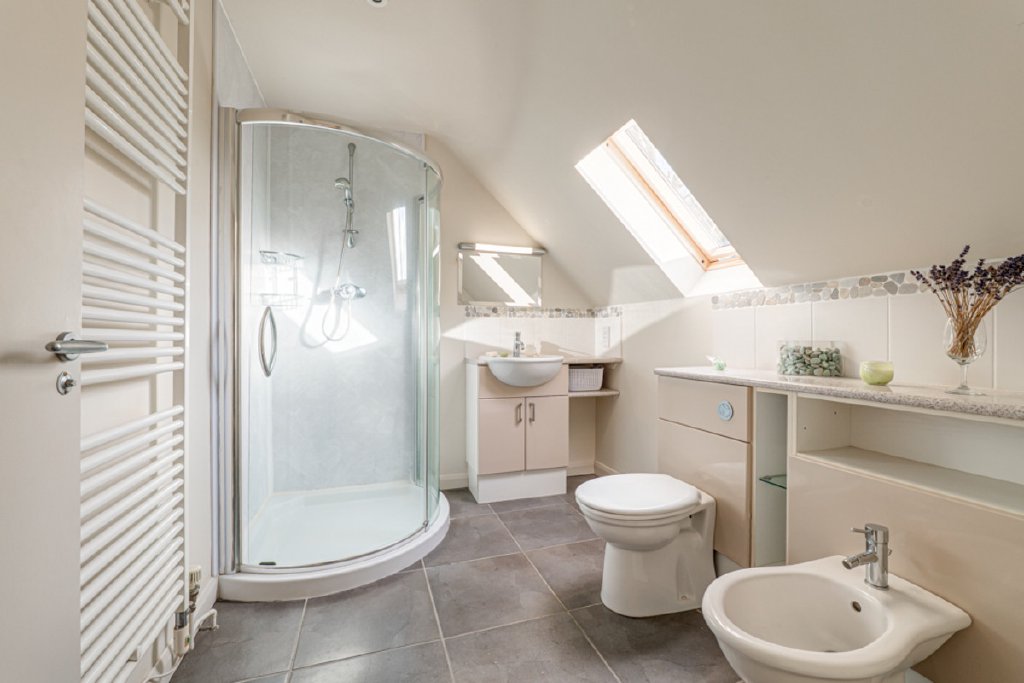 On the first floor an open gallery provides access to three bedroom and shower room. Bedroom one has its own ensuite bathroom with separate shower.