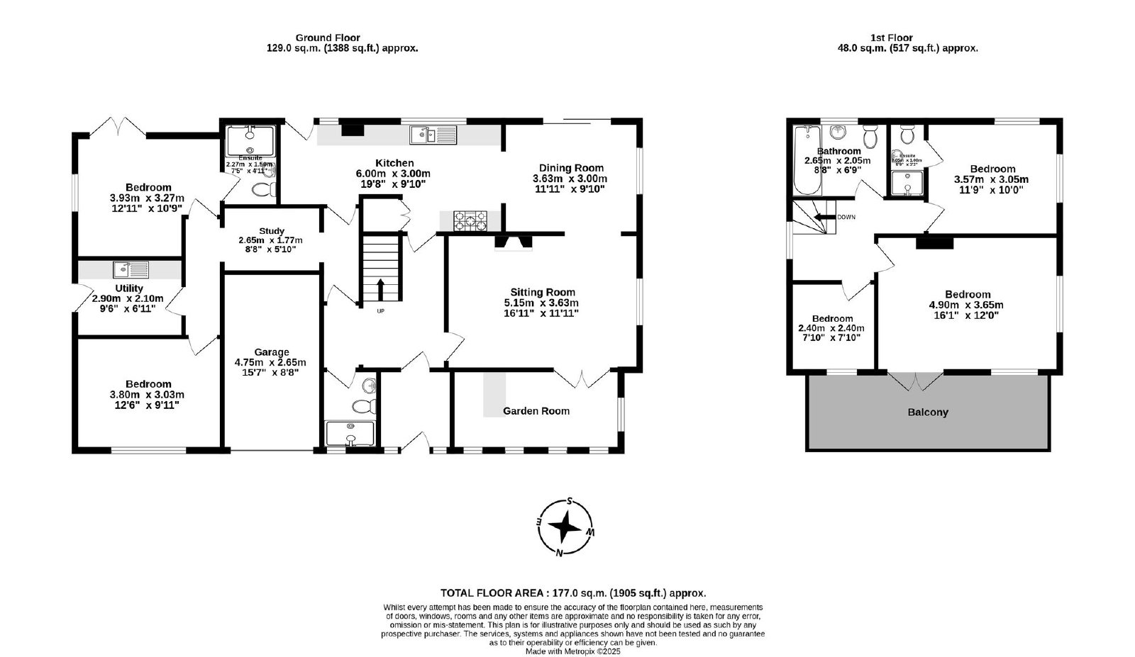 Upstairs, three further bedrooms offer privacy and peace. The principal bedroom is a standout feature, with direct access to a private balcony where you can enjoy stunning views towards the sea and countryside. Bedroom two benefits from an en-suite shower room, bedroom three and a family bathroom complete the upper level.