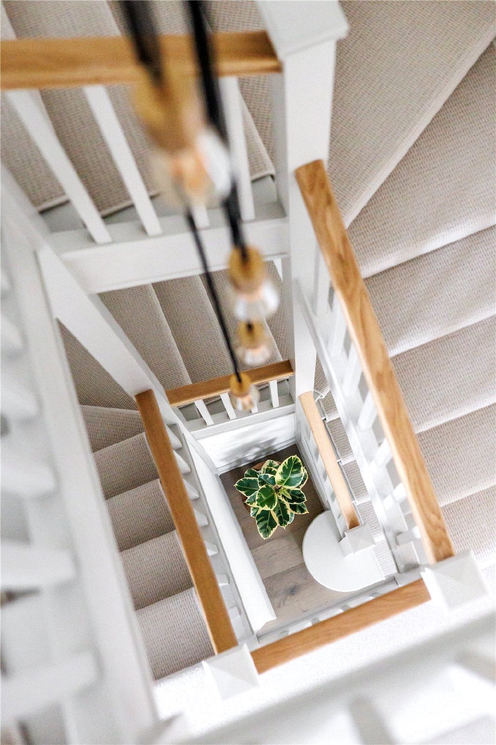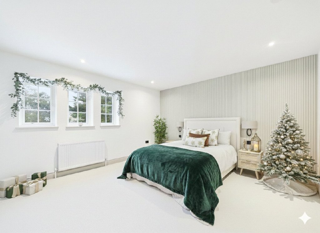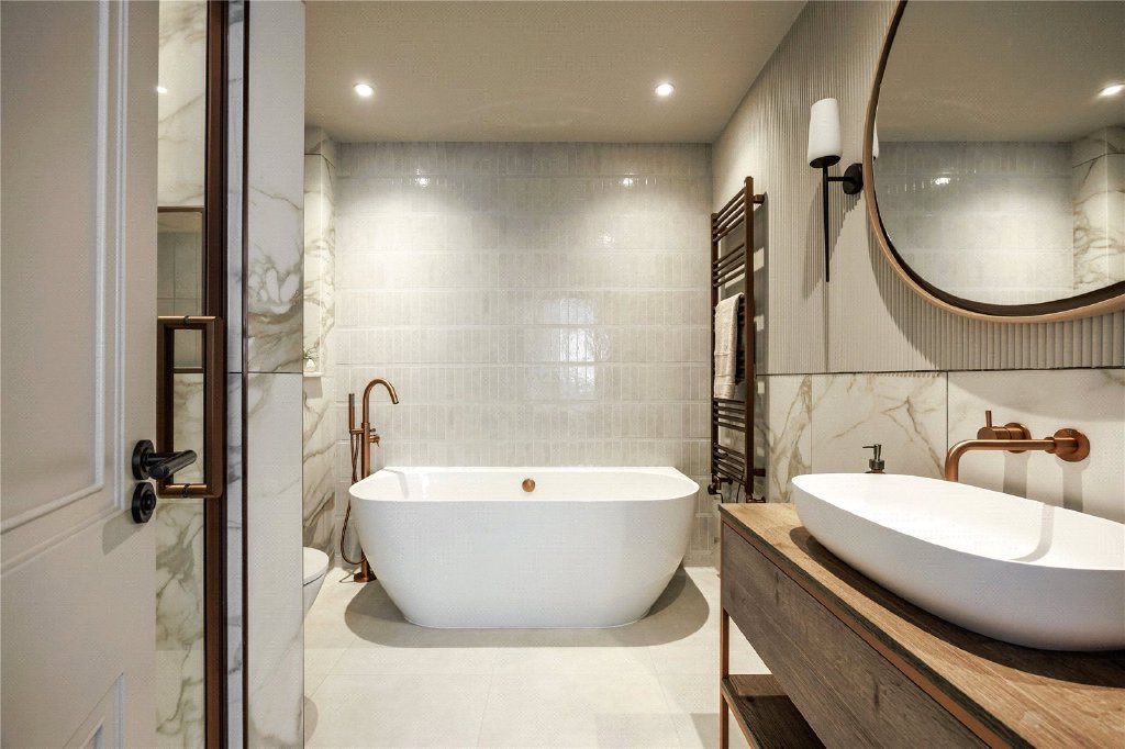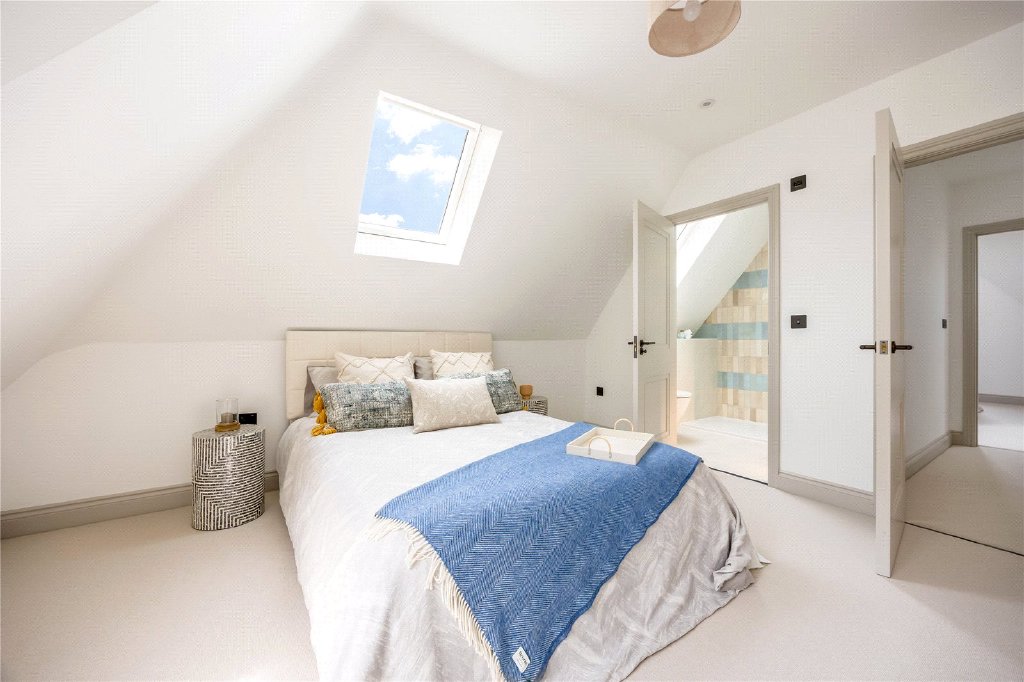 Impressive return staircases with oak balustrade’s and stairwell pendant lighting lead to the first and second floors, over which there are four generous double bedrooms.