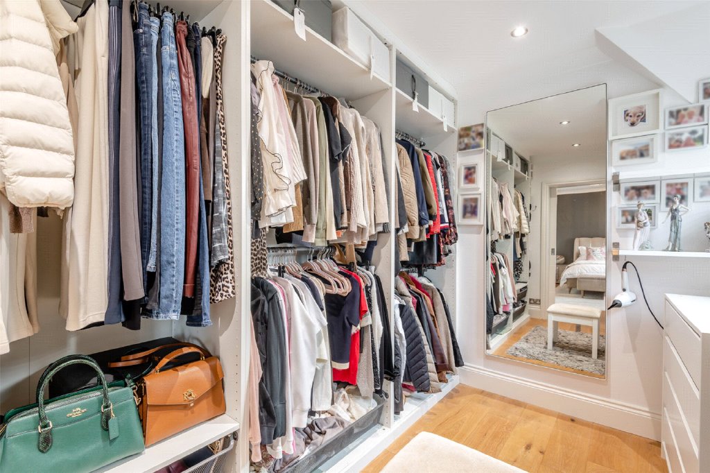 Dressing Room 10'6" x 7'11" (3.2m x 2.41m). Double glazed window to front. Plain coved ceiling. Wood effect flooring. Downlighters. Fitted storage.