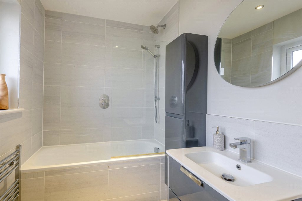 To the first floor, the property now offers four well-proportioned bedrooms, having been reconfigured from its original five-bedroom layout. The principal bedroom suite is a standout feature, incorporating a dressing room and a stylish en-suite shower room, creating a private and luxurious retreat. Bedroom two also benefits from its own en-suite facilities, while the remaining two bedrooms are served by a contemporary family bathroom, making the layout ideal for both families and visiting guests.
