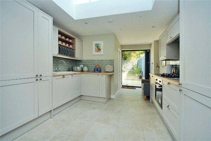 Internally, the accommodation comprises a front reception room with feature brick fireplace, a spacious open-plan kitchen/dining/family room with bi-fold doors onto the garden, a contemporary downstairs bathroom and two well-proportioned double bedrooms. It should be noted that the kitchen and bathroom have the benefit of under floor heating.
