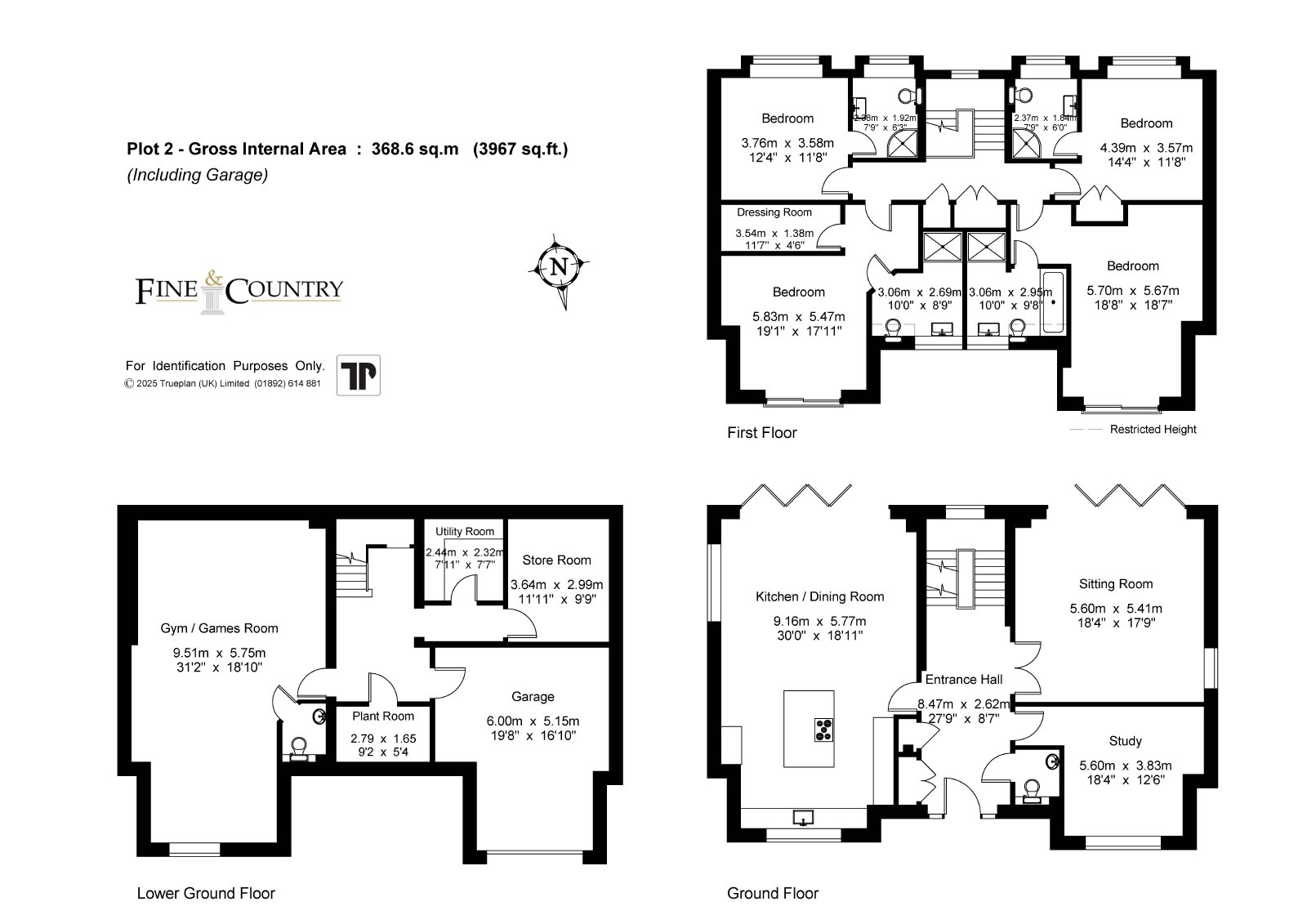 Gym/Games Room 31'2" (9.5m) x 18'10" (5.74m) at widest point.