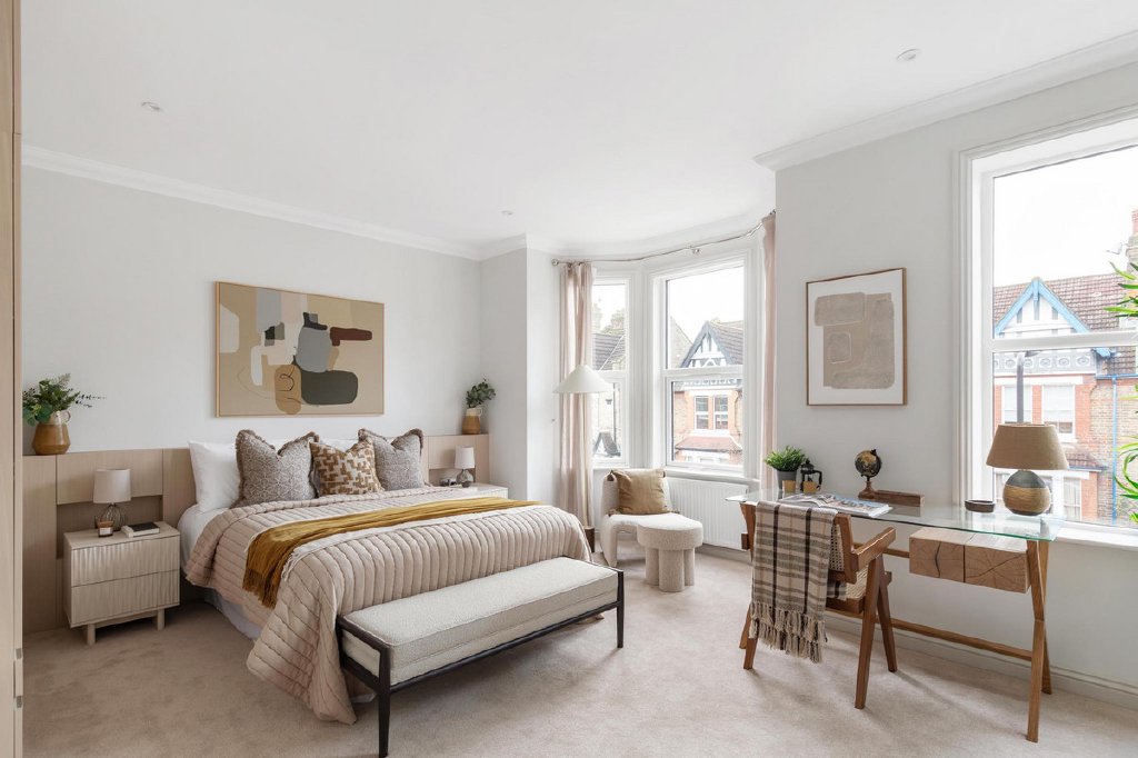 The upper floors continue to impress, offering a generous principal bedroom, further beautifully proportioned bedrooms, dedicated study spaces and stylish bathrooms finished with large-format Grespania tiling, brushed JTP brassware, RAK sanitaryware and bespoke joinery throughout. Excellent storage solutions are thoughtfully integrated, ensuring the home remains as practical as it is elegant.