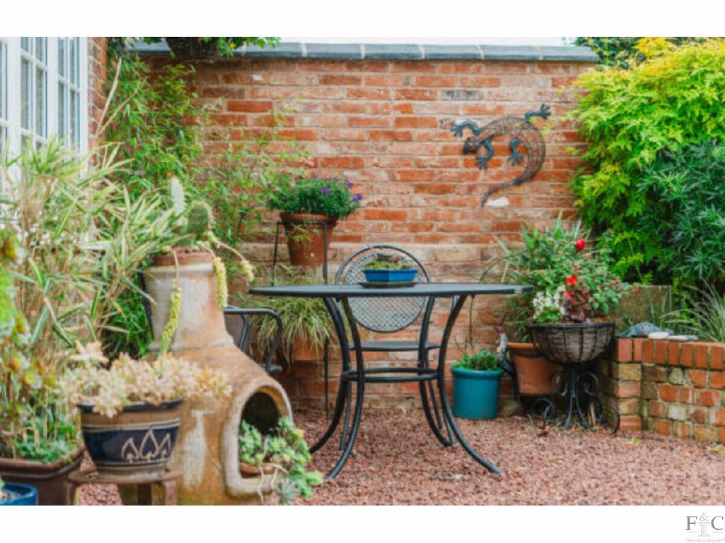 Outside, the front garden is beautifully arranged with mature planting, a wildlife pond, vegetable beds and a choice of seating areas. A gravel driveway with electric point provides parking for two cars, with additional discreet storage beyond.