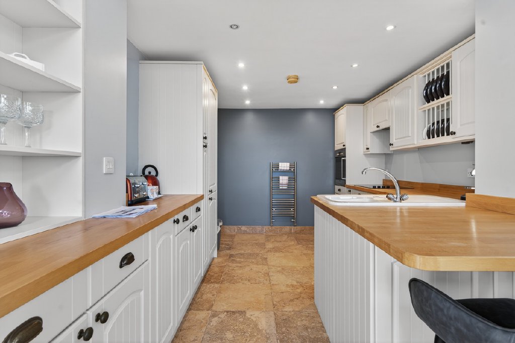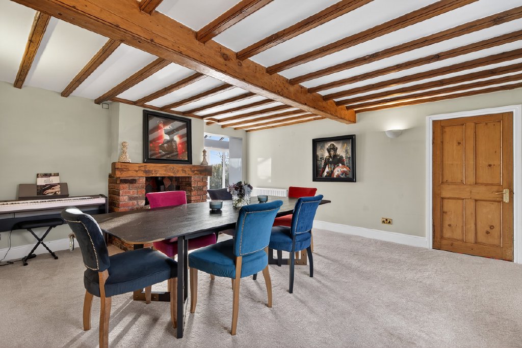 The kitchen is both stylish and practical, combining modern design with traditional charm. A central island provides an ideal space for casual dining and food preparation, while an AGA, exposed beams, and a comprehensive range of wall and base units enhance both functionality and character. Thoughtfully, the kitchen also features interconnecting access to the self-contained annexe, allowing flexible use as extended family accommodation, guest space, or for integrated living if required.