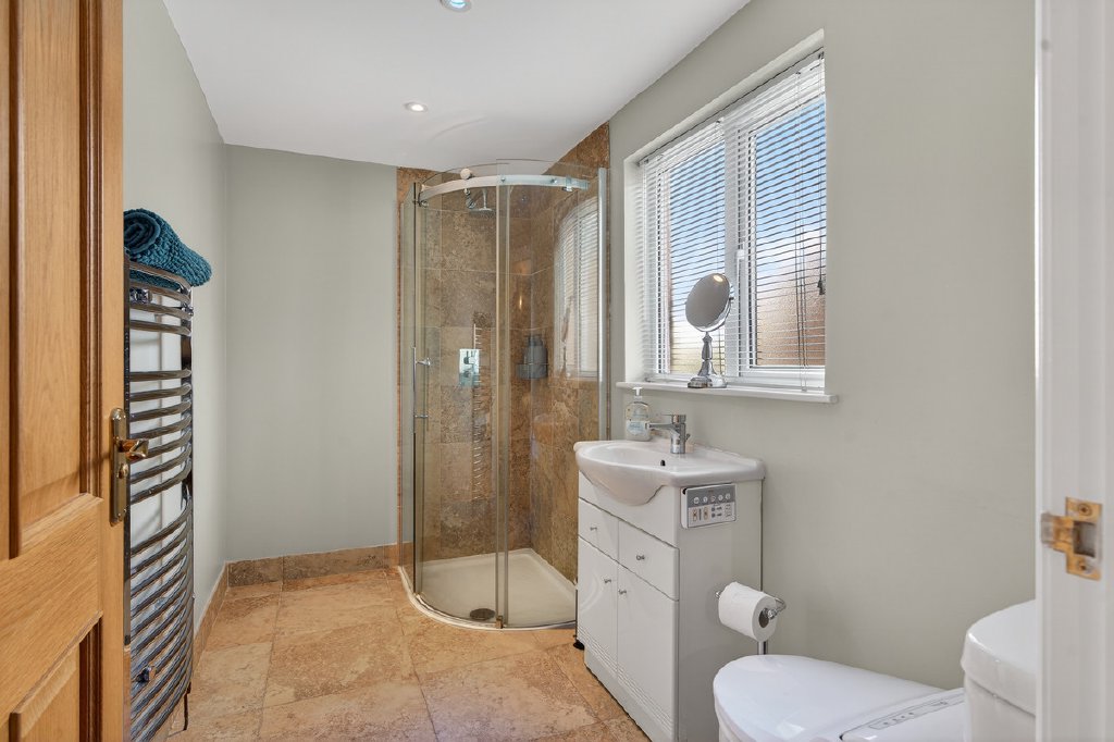 On the first floor, four generous double bedrooms provide comfortable and versatile sleeping accommodation. The principal bedroom is served by a shower en-suite, while the family bathroom includes a freestanding bath and separate shower, finished to a high standard with contemporary fittings.