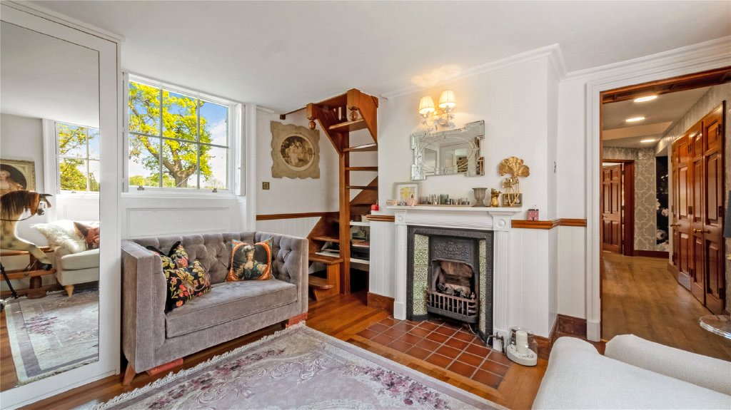 The snug, located in the original lodge, features stunning mahogany floors and period fireplace. The snug has previously served as a double bedroom, nursery, and now as a relaxed retreat. Above it, one of the double bedrooms enjoys the same historic charm. This self-contained section of the home is perfect for live-in staff, a guest suite, or a teenager seeking independence. The flexibility of the space allows for the property to grow and change alongside its residents, as it has done for the past 38 years.