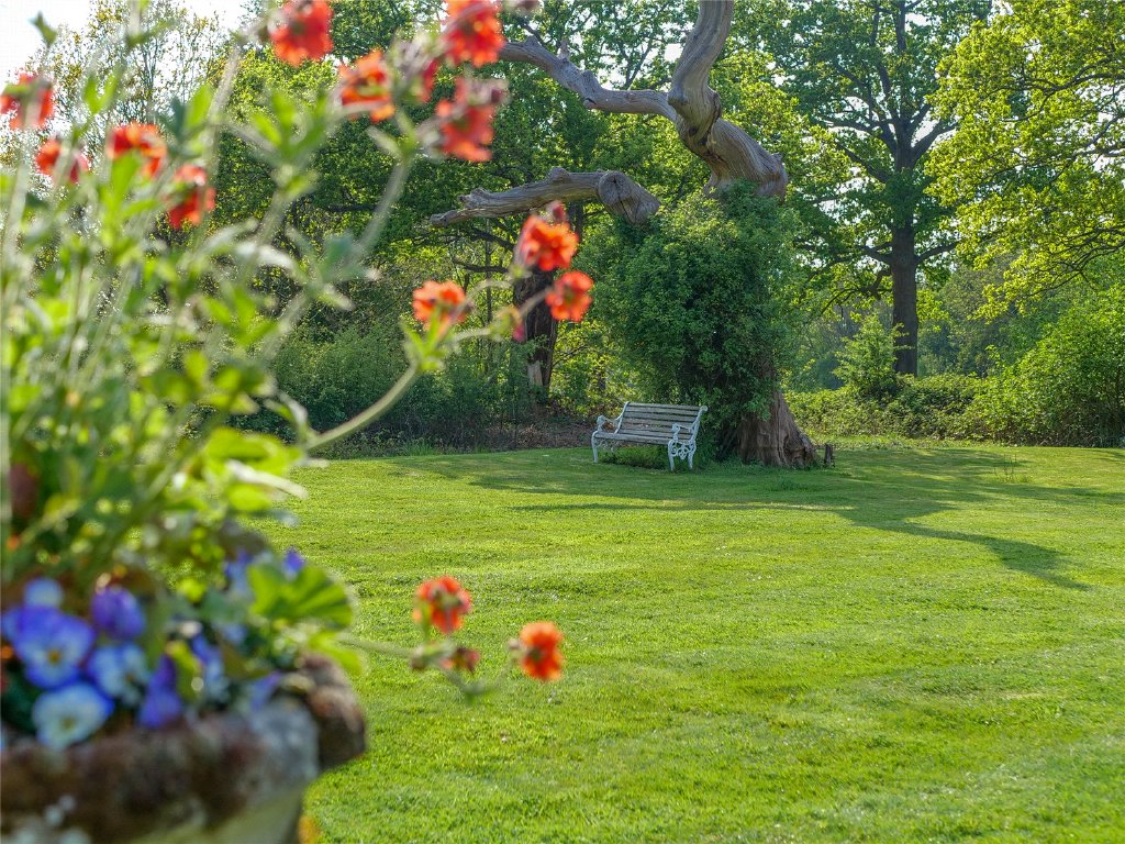 The garden at East Lodge is a serene oasis; backing onto Dyrham Park Golf Club and surrounded by green open space. The beautifully landscaped grounds offer year-round beauty and include a terrace perfect for alfresco dining and hosting. The garden is adorned with gorgeous plants and shrubs including a grandiflora magnolia tree, twisted willow and rose and herb gardens.