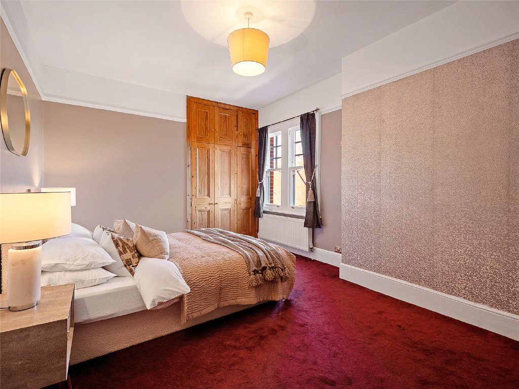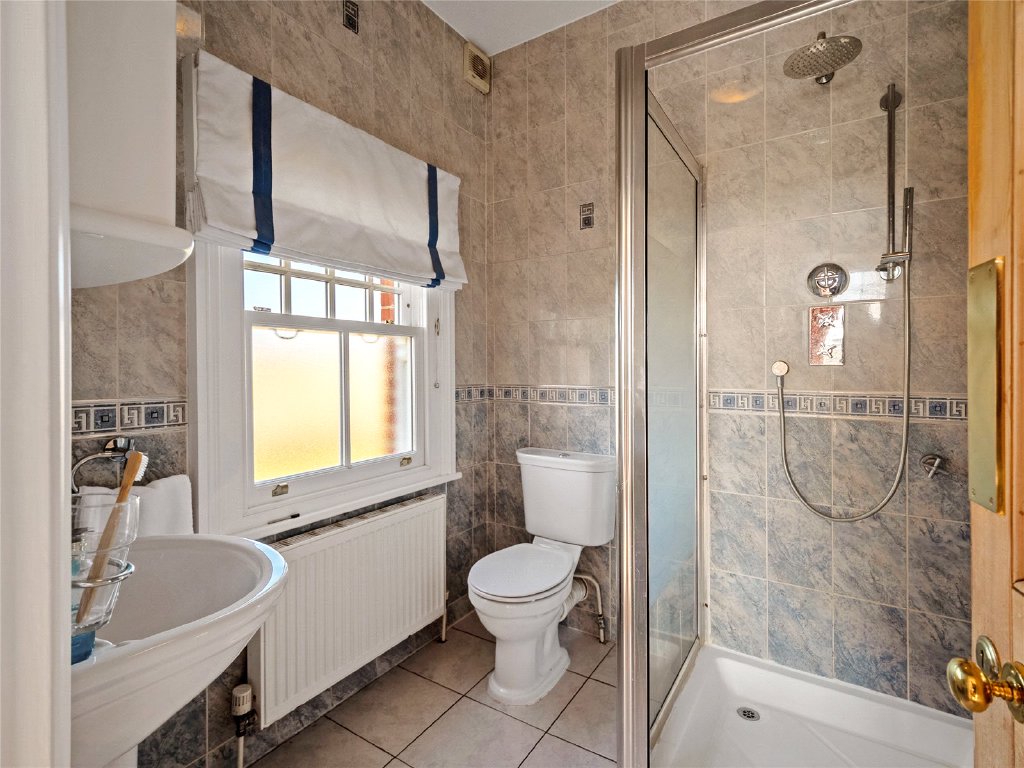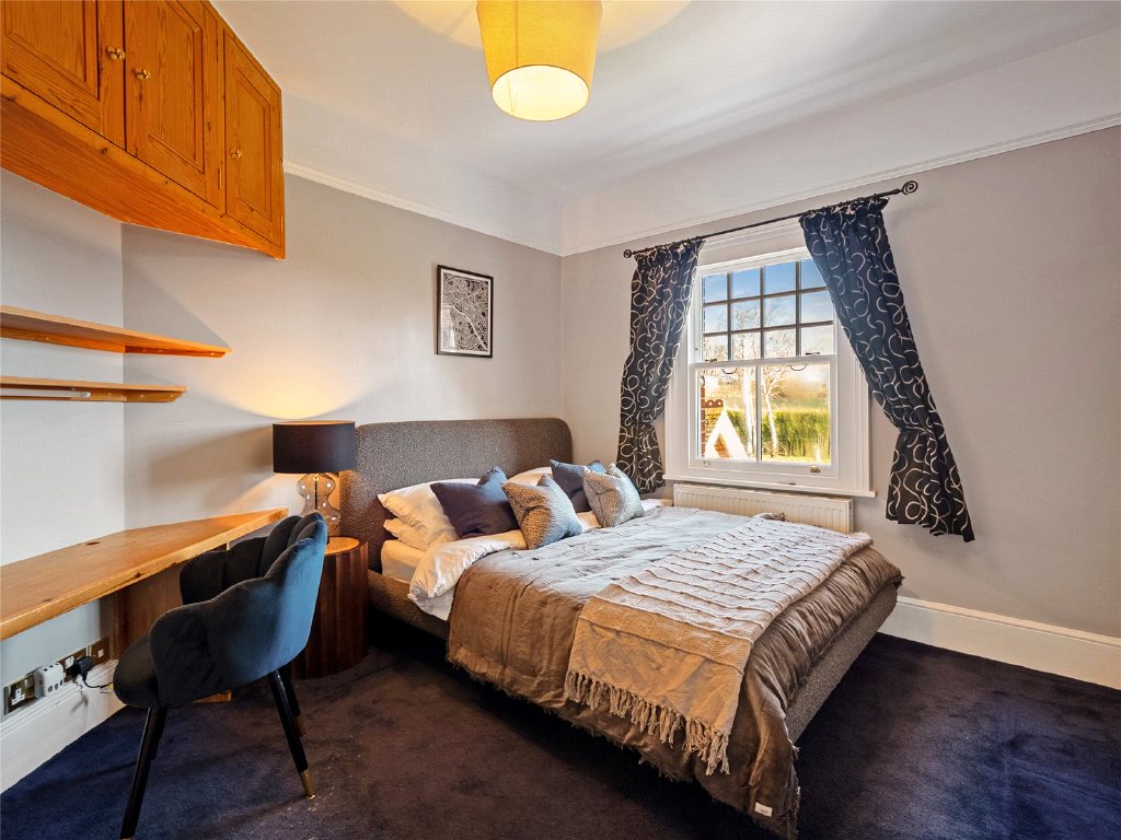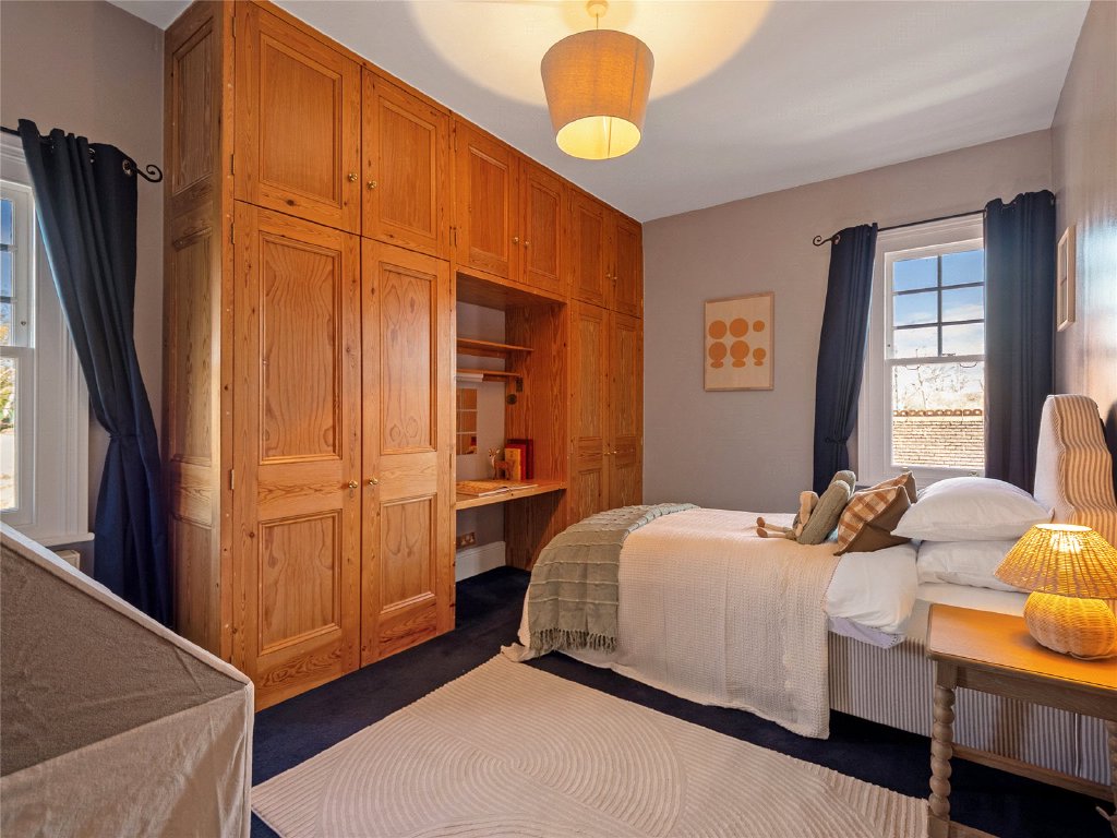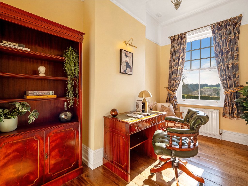 The well-appointed home office offers a serene workspace with garden views. Also on the ground floor, you’ll find a guest WC, boot room and store room. For practicality, there is a secondary staircase at the other side of the house.