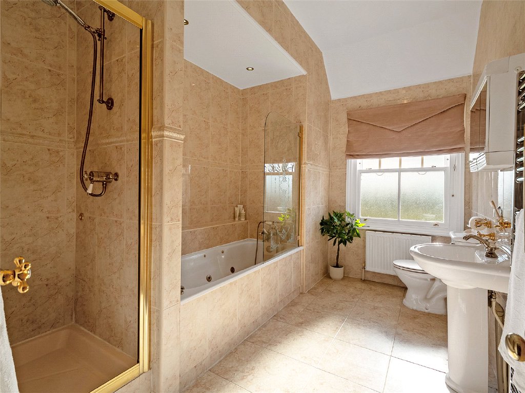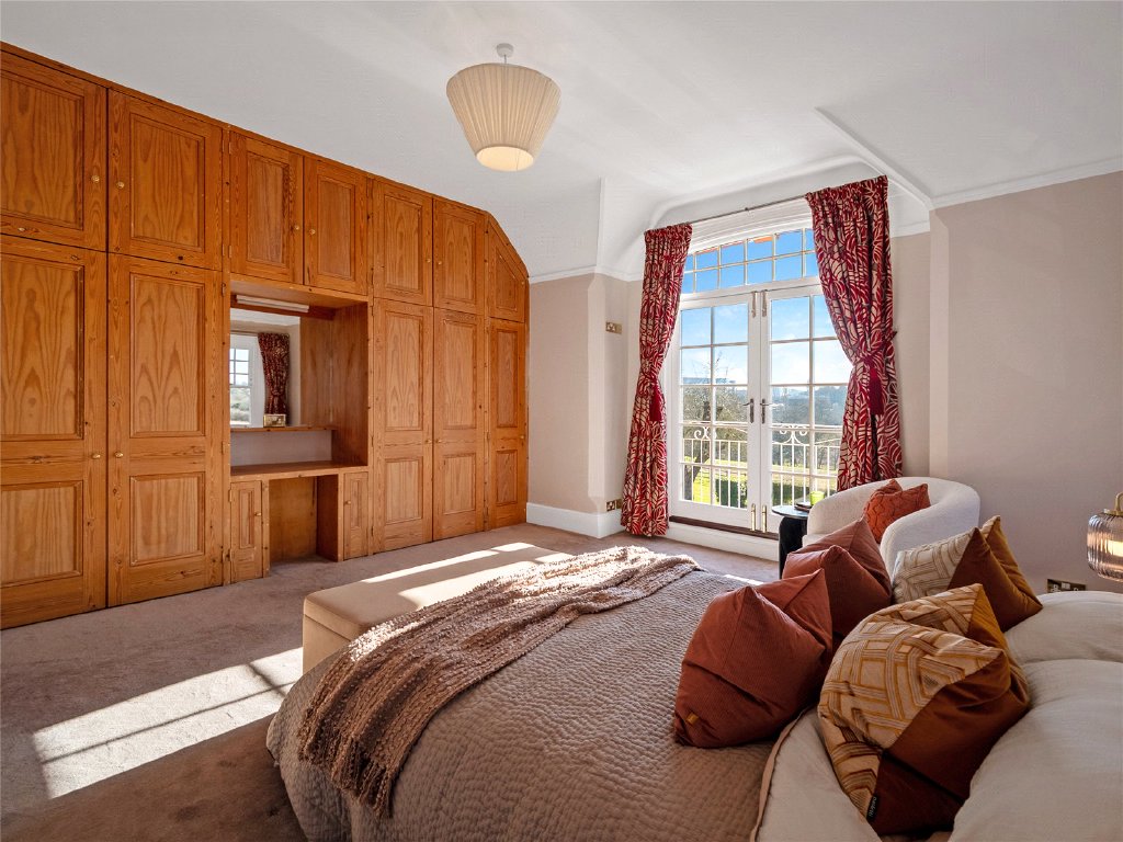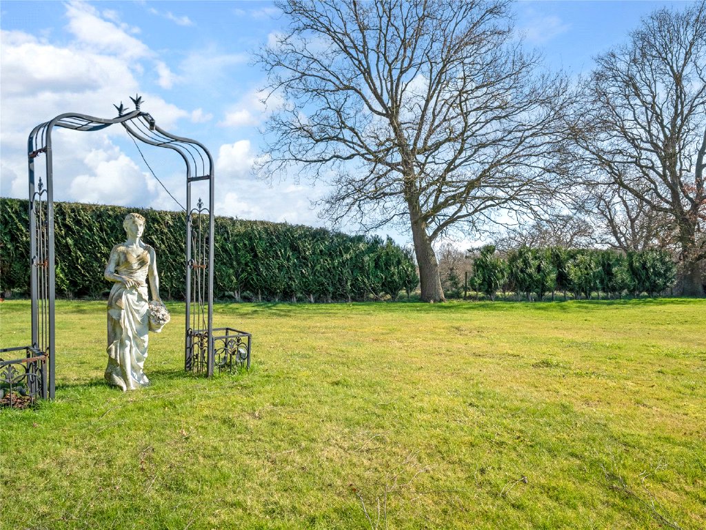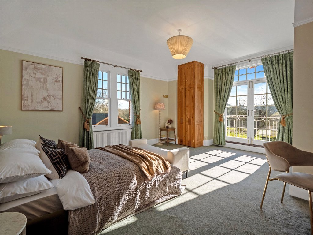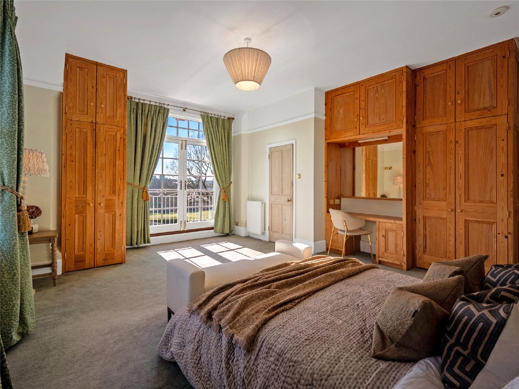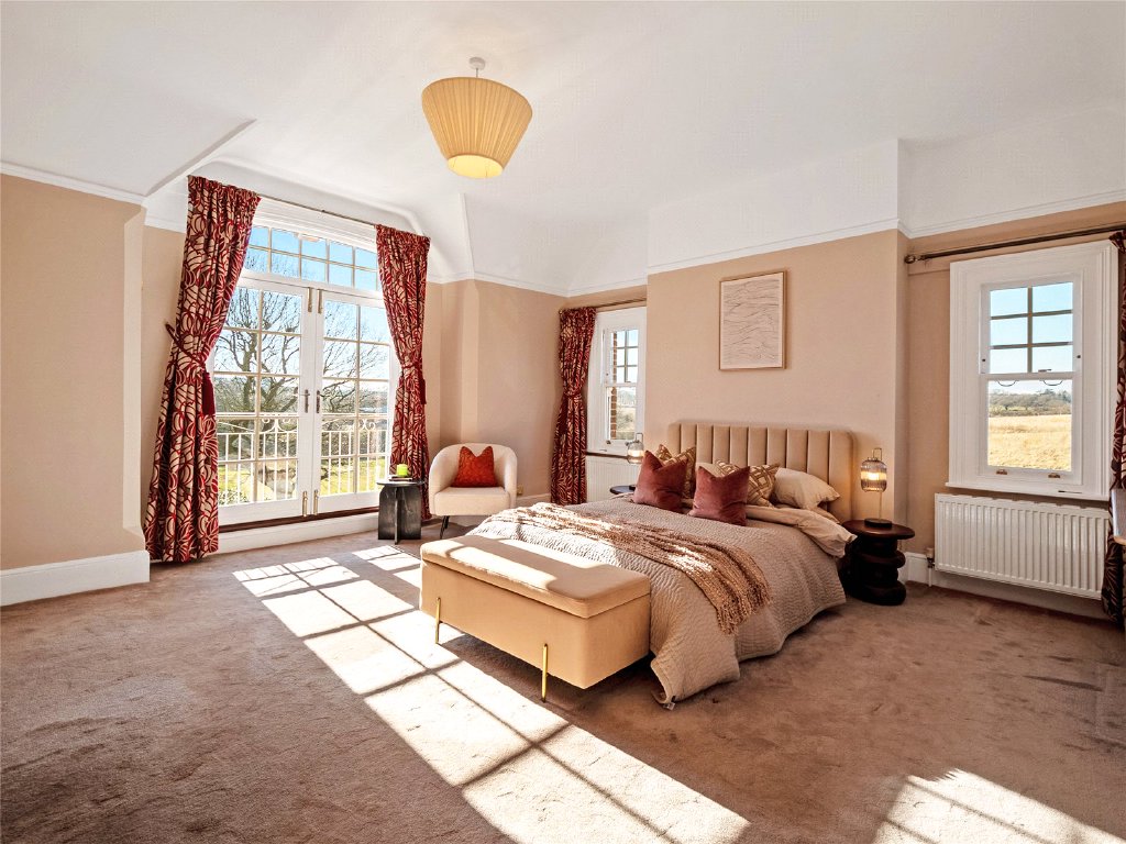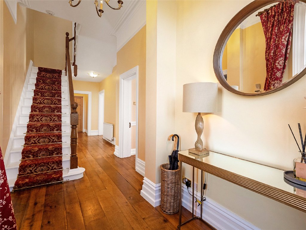 Outside, the property’s grounds are truly exceptional. Approximately one acre of meticulously landscaped gardens surround the house, creating a tranquil and private setting, while an additional four acre field is included under a long lease.