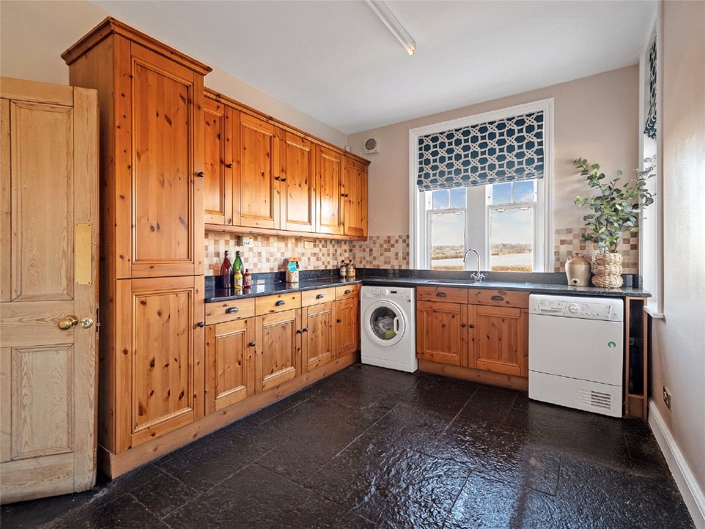 The heart of the home is the wonderful traditional farmhouse kitchen, with rangemaster Stove and ample space for a 6 seater dining table. There is a large separate utility room next to the kitchen, with ample space for a washer and dryer as well as extra preparation space. There is underfloor heating beneath the striking stone flooring in the kitchen and utility room.