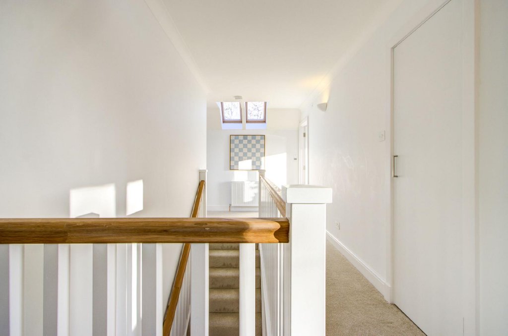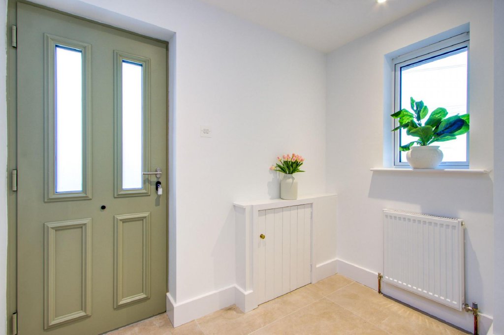 The entrance hall provides a warm welcome and benefits from a large cupboard and space for coats and boots, after a walk on the beach or a stroll into the village.