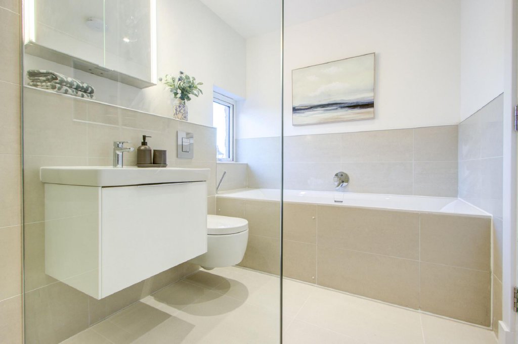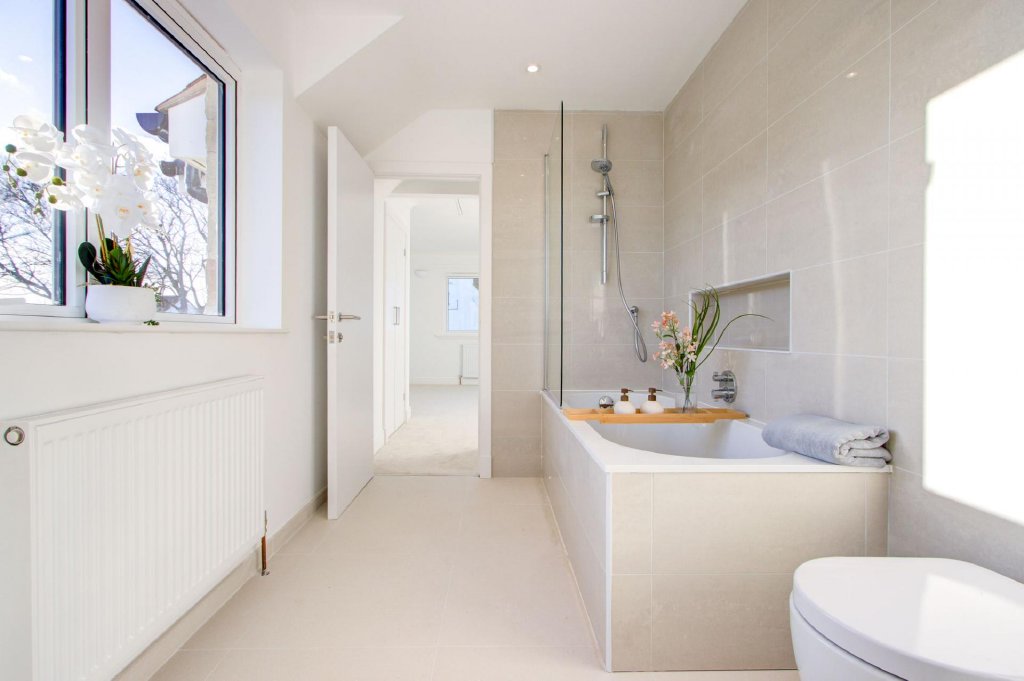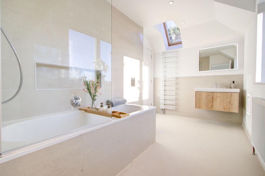 The central staircase rises to the spacious first-floor landing, with a useful cupboard to house a washing machine and dryer, making laundry more convenient. Enjoying stunning sea views, the elegant principal bedroom is complemented by a luxurious en-suite bathroom, designed with comfort in mind. There are two further generous double bedrooms, thoughtfully arranged with a stylish Jack and Jill bathroom. All the bedrooms benefit from fitted wardrobes.