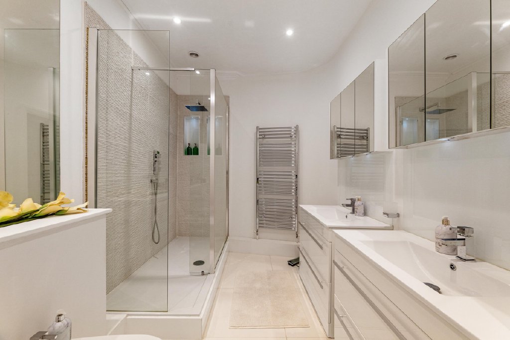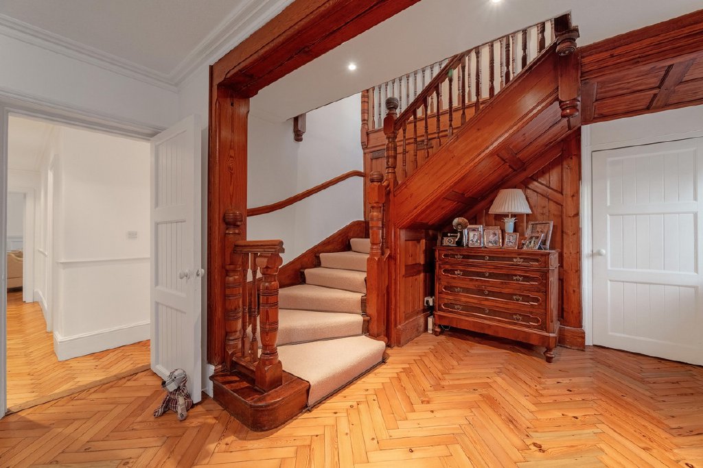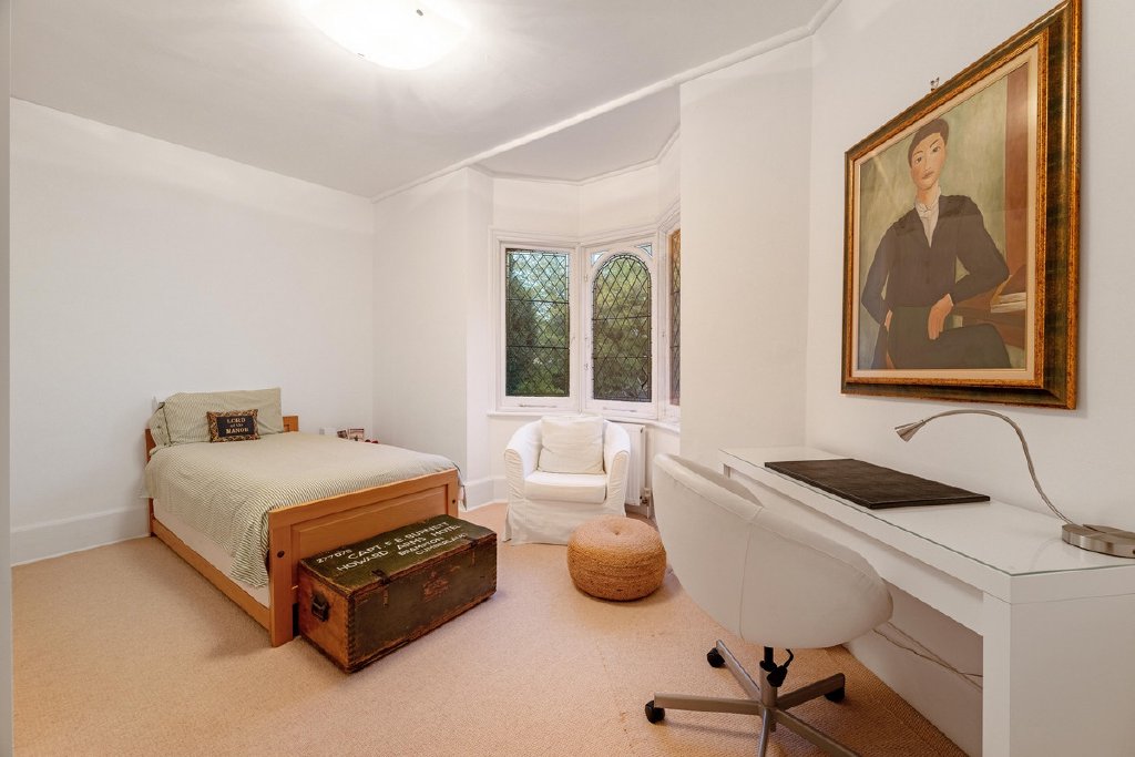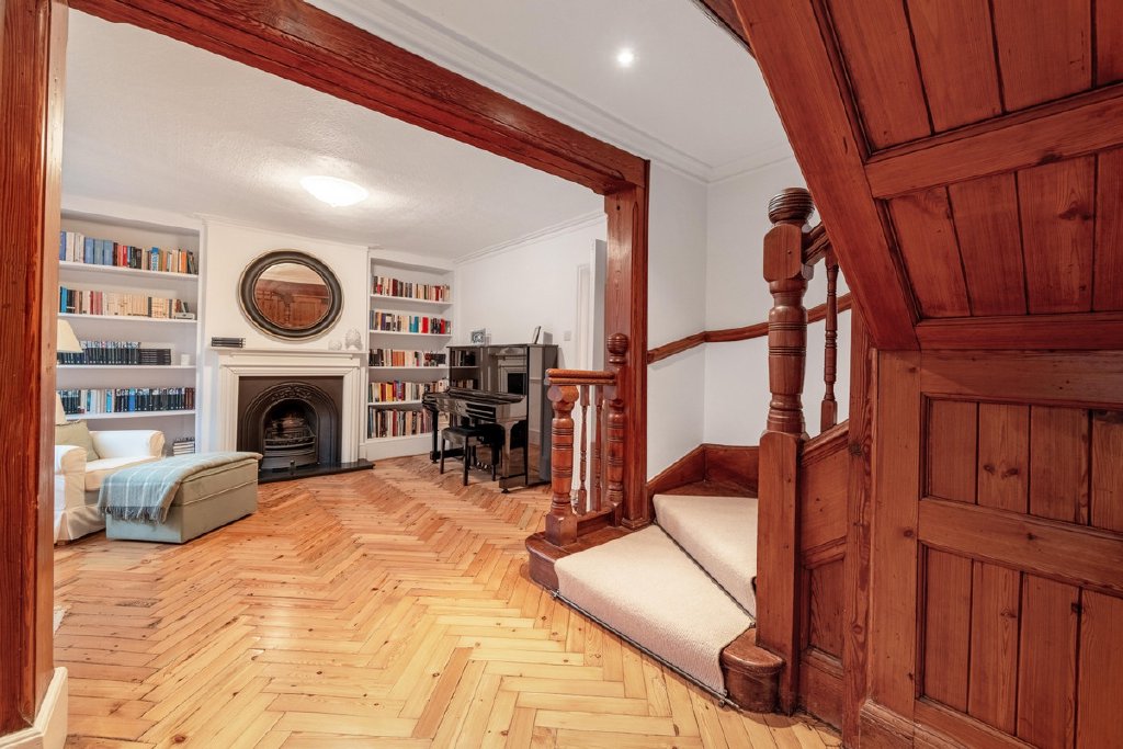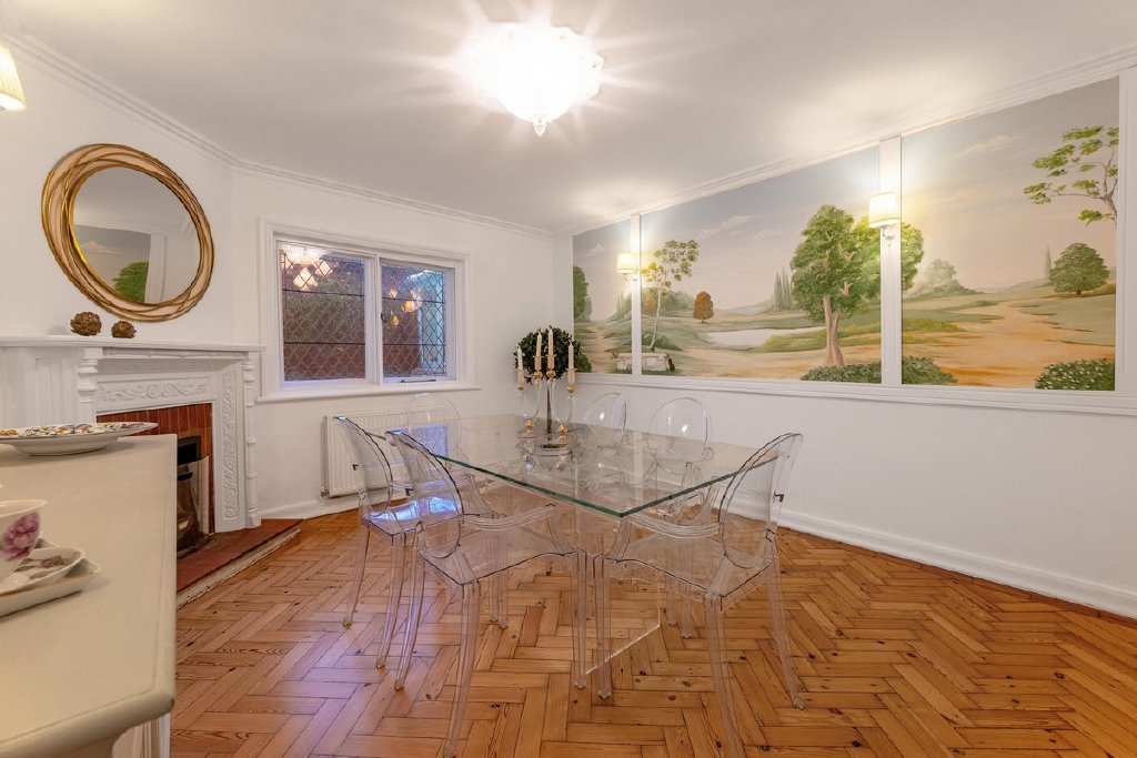 The living spaces are equally impressive, with four elegant reception rooms, including a light-filled garden room that opens directly to a courtyard patio. A modern, fully equipped eat-in kitchen completes the heart of the home.