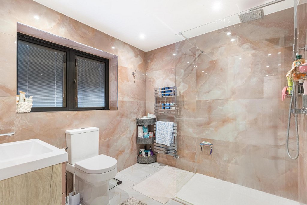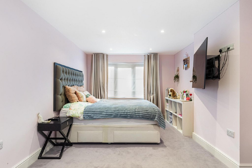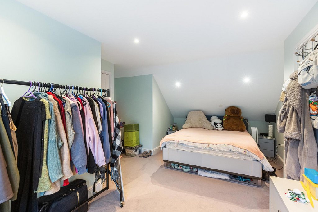 Upstairs, the accommodation continues to impress. The first floor provides two generous bedrooms, including a principal suite with a dedicated dressing room and en suite bathroom, alongside a further luxurious family bathroom. The second floor adds two further bedrooms, additional bathroom facilities and extensive storage, making the layout highly flexible for families, guests or hybrid living arrangements.