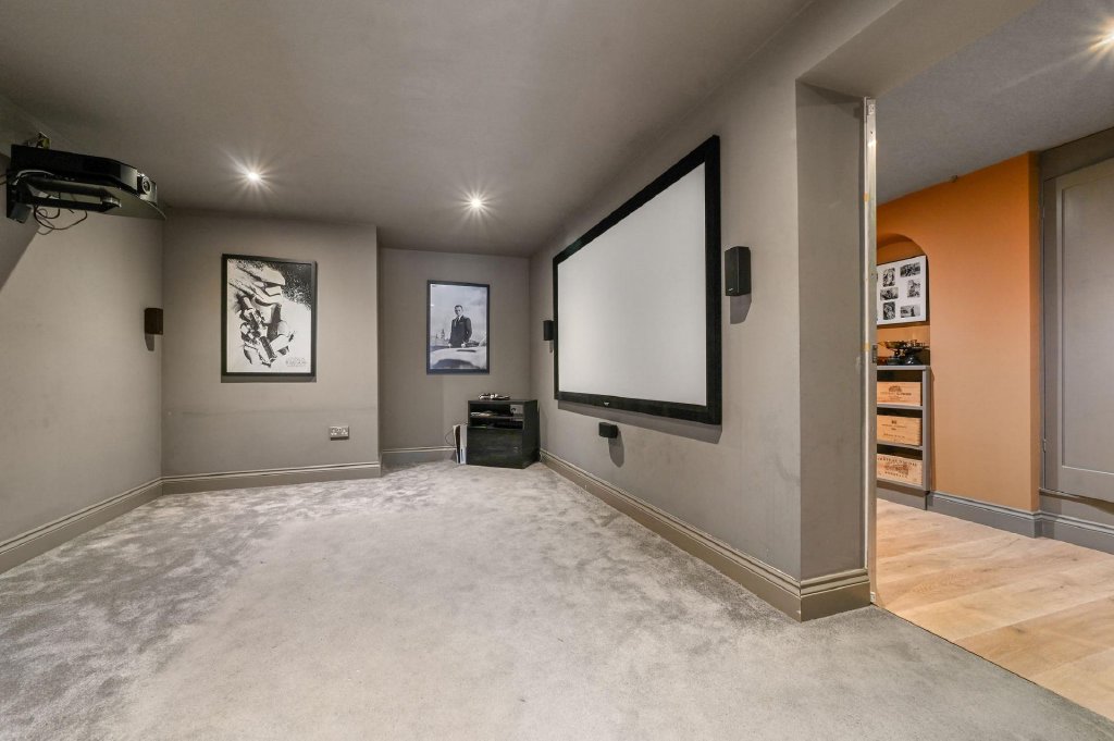 The lower ground floor serves as the social heart of the property, featuring a stunning open-plan kitchen, dining, and family area with direct access to the rear garden - ideal for modern indoor/outdoor living. This level also includes a cinema room, walk-in wine cellar, utility room, and a contemporary bathroom.