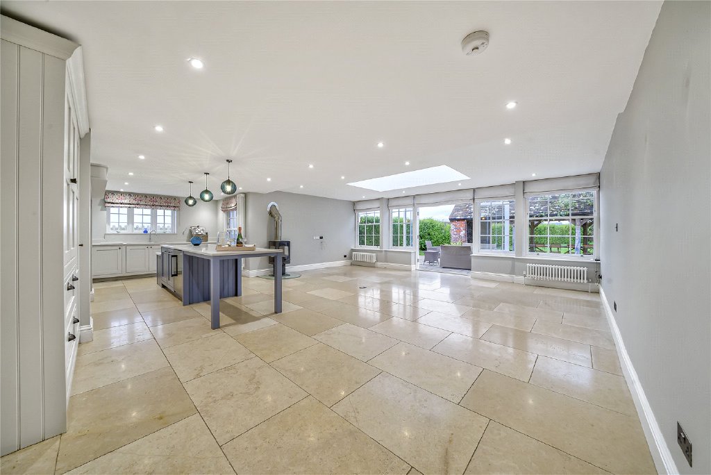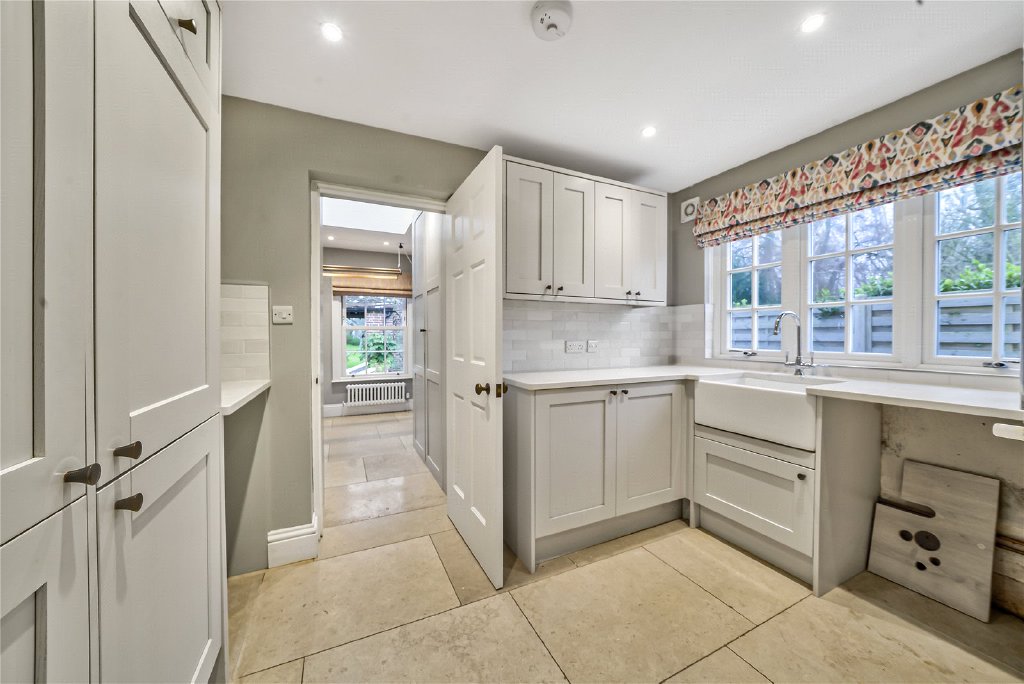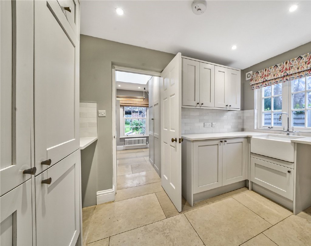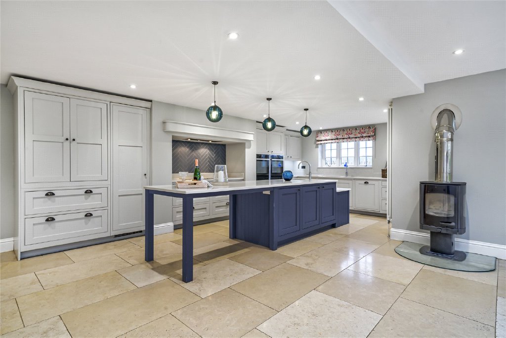 Practicality has not been overlooked: a superb bespoke wine store is accessed directly from the kitchen, while a generous utility room, cloakroom, and boot room provide ample space for everyday essentials and outdoor gear after long country walks. Together, these elements make the kitchen both a functional hub and an inspiring setting for family life and entertaining.