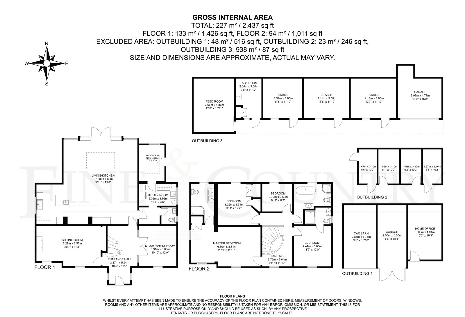 To the front elevation, a stable block offers three loose boxes, a tack room, feed store, and garage/machinery store. A five-bar gate leads to a well-fenced paddock of 1.8 acres, perfectly suited for equestrian pursuits. Whether entertaining friends, tending the garden, or riding out, the grounds are designed to enrich every aspect of country life.