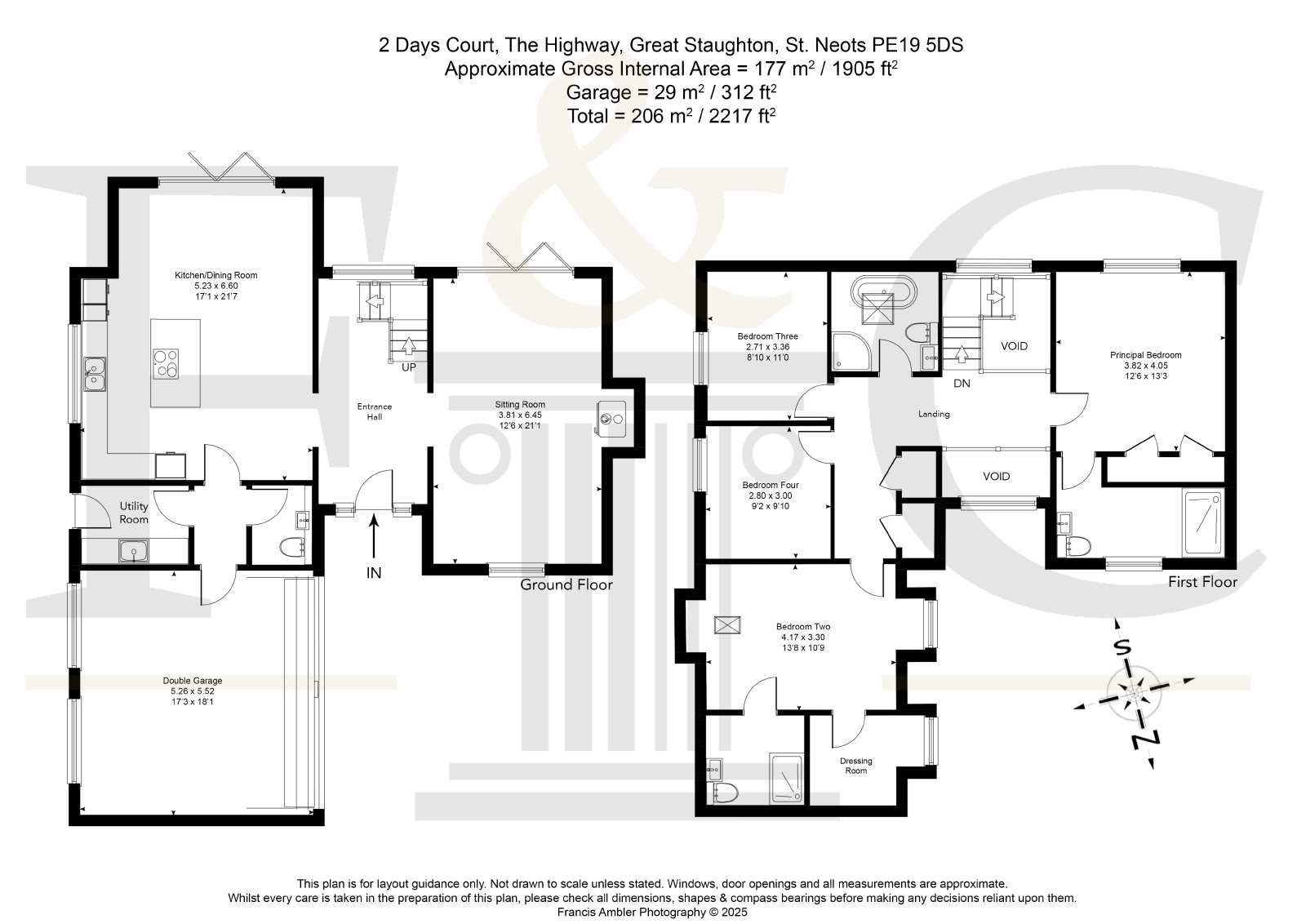 Upstairs, the accommodation continues to impress with two principal bedroom suites, both with dressing rooms and en suites, alongside two further well-proportioned bedrooms served by a family bathroom, offering comfort and privacy for family and visitors alike.