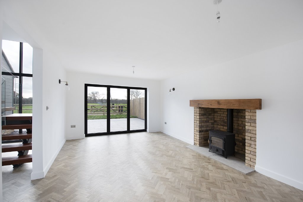 A formal living room, complete with wood-burning stove and further bi-fold doors to the garden terrace, provides another flexible space for everyday living or hosting guests. Practicality is assured with an adjacent utility room and guest cloakroom.