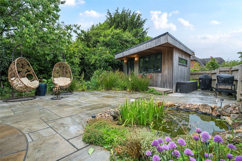 The cottage gardens offer a large front lawn with original working well and mature hedging feeling very private, to the rear there are two beautifully designed paved terraced areas for outside dining. Going up a few steps to the pond, there are raised beds, fruit trees and a wood clad studio with decking area and lighting. The studio offers a good space with wired WIFI making a calm working space or could be further living accommodation. The low-level picket fencing takes you out to the car port with extra parking, two large workshops at the rear and access to the Annex.