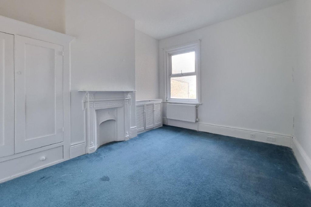 BEDROOM 3 13' 10" x 11' 2" (4.22m x 3.4m) Double glazed window to rear aspect with radiator under, cast iron surround fireplace with built-in wardrobe to one side.
