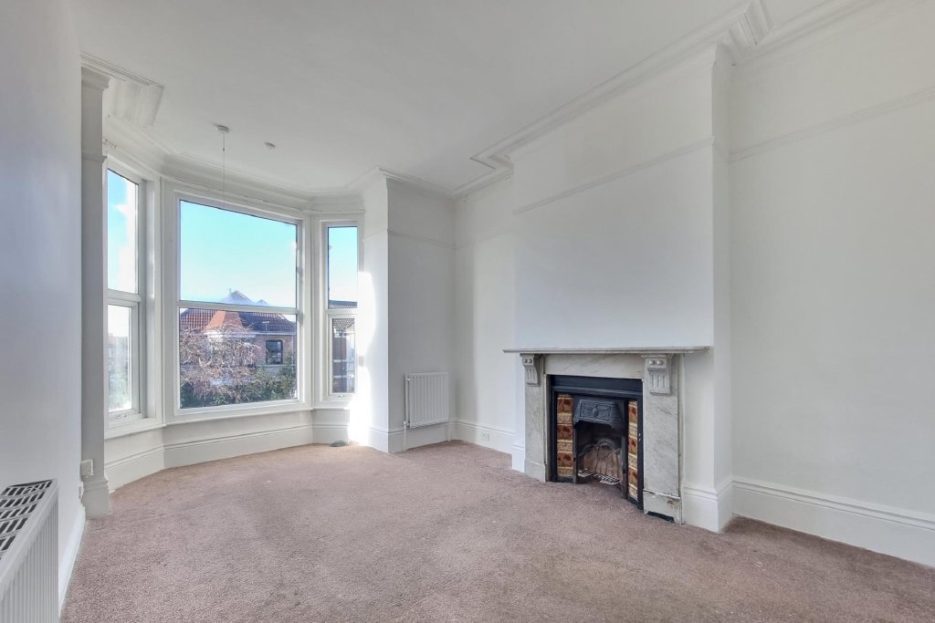 BEDROOM 1 17' 3" x 11' 3" (5.26m x 3.43m) Measurements do not include recessed area for door opening, radiator, central chimney breast with granite surround fireplace and cast iron inlay, double glazed bay window to front aspect.