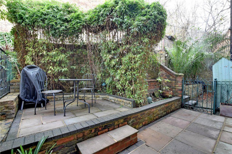 Outside, the house enjoys a paved front garden, and to the rear a private garden with terrace seating and planting, plus steps up to an additional raised area – ideal for outdoor dining and summer evenings (the steps are communal with the adjoining property).