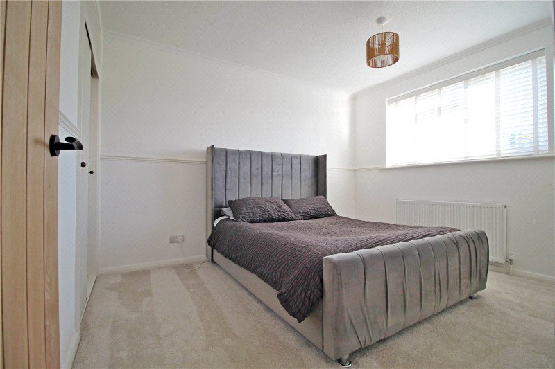 11’7 x 9’9 with UPVC window to front aspect, radiator, power points, built in double wardrobe