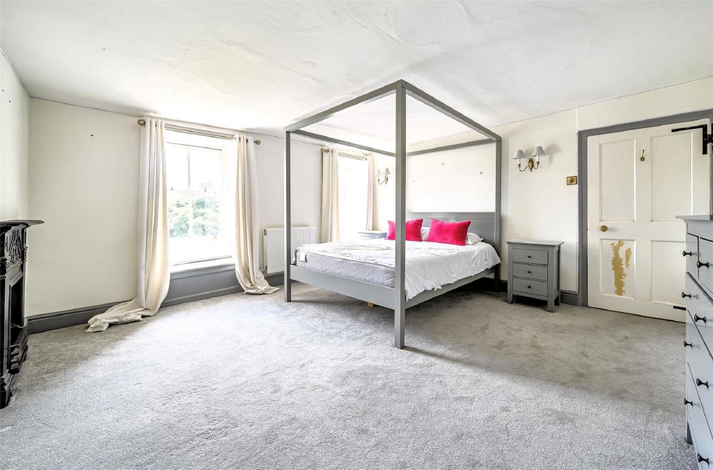 The first floor is arranged around a central landing and includes a principal bedroom suite with southerly outlook, walk-in dressing room and en-suite shower room. Two further bedrooms are served by a family bathroom featuring a roll-top bath, along with an airing room and additional storage. On the second floor are two further bedrooms set within the roof space, both generous in size and benefiting from eaves storage.