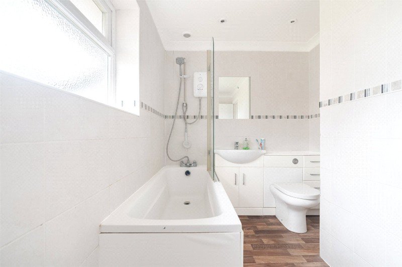 From the hall, a staircase (with half landing) leads to the first floor landing which has a loft access and an airing cupboard containing a Baxi gas central heating boiler. Bedrooms 1 and 2 have built-in wardrobes, and there is a spacious third bedroom and a bathroom with bath (with shower and screen over), wash basin, WC and towel radiator.
