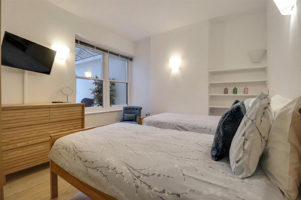 A smart Victorian-style tiled entrance hall sets the tone on arrival, opening into a bright and welcoming hallway finished in a clean, modern décor. To the front sits the first of four generous double bedrooms, a delightful room with a broad bay window that frames the spectacular river outlook and allows natural light to pour in. A second double bedroom lies centrally, currently arranged as a spacious twin, ideal for guests or children.
