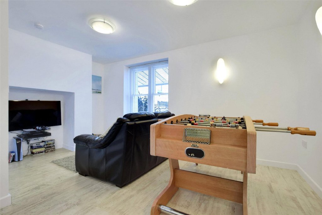To the front, a separate and highly versatile reception room provides valuable flexibility – currently used as a playroom but equally well-suited as a fifth bedroom, guest suite, snug or home office. Overlooking the front elevation, it offers an adaptable space to suit a range of needs.