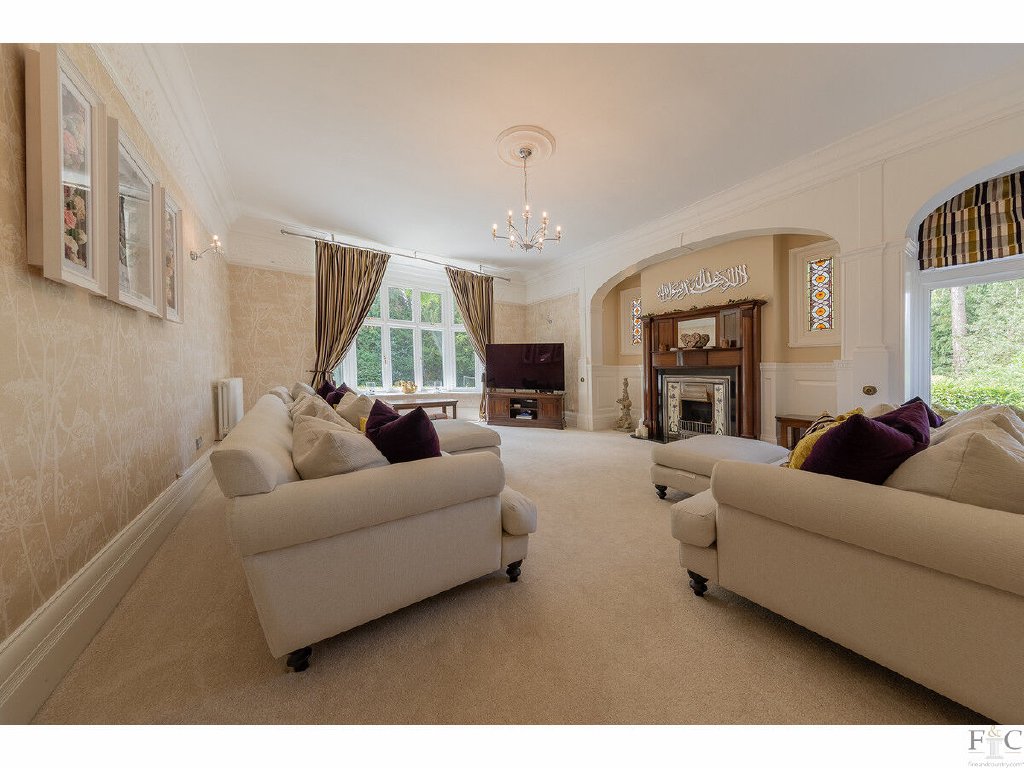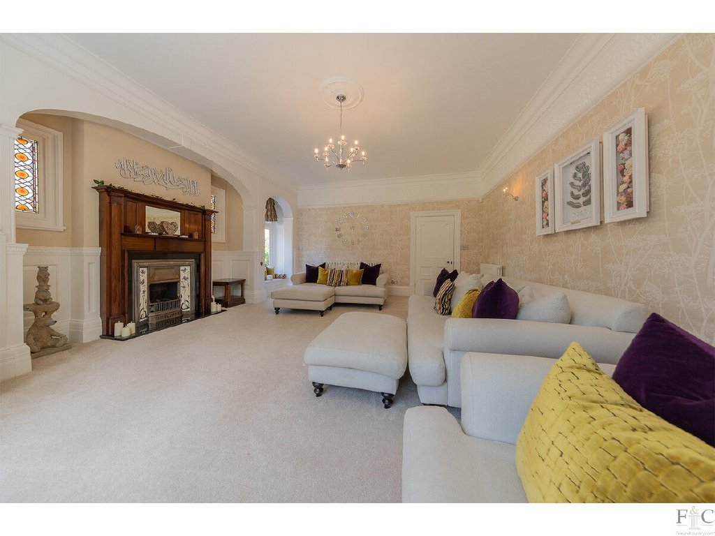 Offered with no upward chain and within the Kirby Fields conservation area of the Leicestershire village of Kirby Muxloe, Charnwood House is a six bedroom detached house positioned amongst mature trees and an established acre of English country garden. Neighbouring other bespoke properties on Stamford Road, it was originally built in 1891 for a prominent business entrepreneur and Mayor of Leicester, Sir Edward Wood. Since its prestigious construction, the house has been tastefully maintained, restored and improved to preserve its grand and stately appearance while providing a delightful home with generously sized rooms of style and taste.