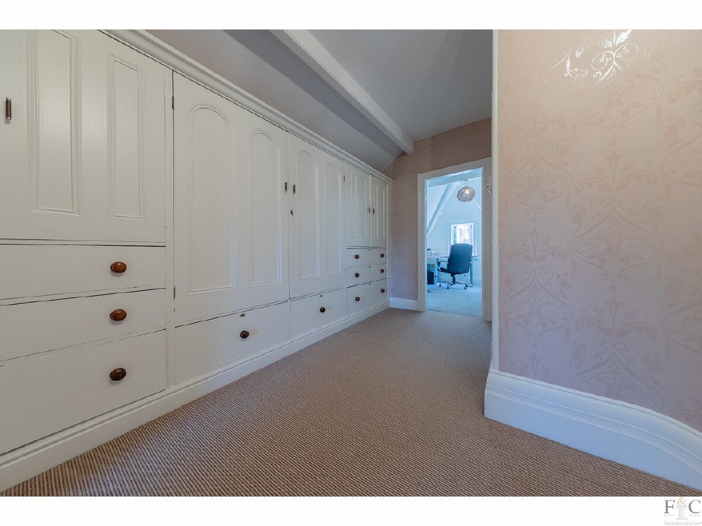 The second floor rooms are linked by a half landing that is lined with original floor to ceiling Victorian cabinetry. Bedrooms five and six are located here and have wonderful views over the grounds and beyond. They are beyond double rooms and one has fitted furniture and another a wash basin.The study is accessed from the landing and provides a door into the lofts above where provision has been gained for additional rooms.