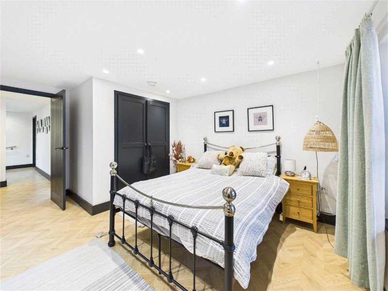 Once a commercial retail premises, this charming period property has been thoughtfully transformed into a stylish modern home. The light-filled, open-plan ground floor features slate flooring, a built-in wood-burning stove, and a beautifully designed kitchen with a breakfast island, fitted units, integrated fridge-freezer and a double oven with electric halogen hob. A discreet understairs utility cupboard provides space and plumbing for a washing machine.
