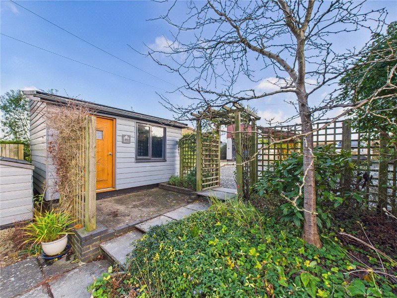 Set within a generous plot, the property enjoys a fabulous tiered rear garden featuring a variety of mature shrubs, lawned areas, a vegetable plot, delightful seating areas and an orchard, making it ideal for both relaxation and entertaining. To the front of the property is an extensive gravelled parking area, along with a detached timber studio, a garage and an attached car port.